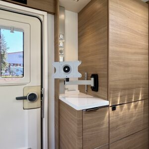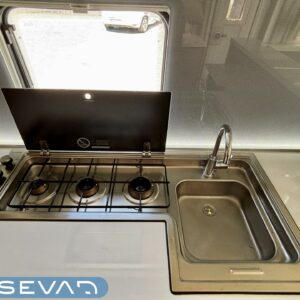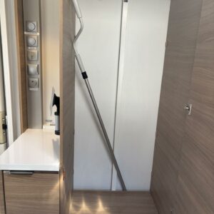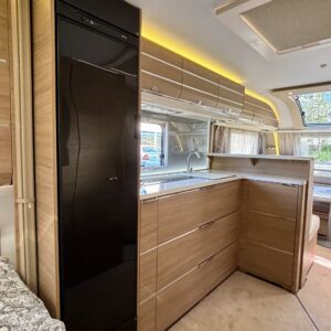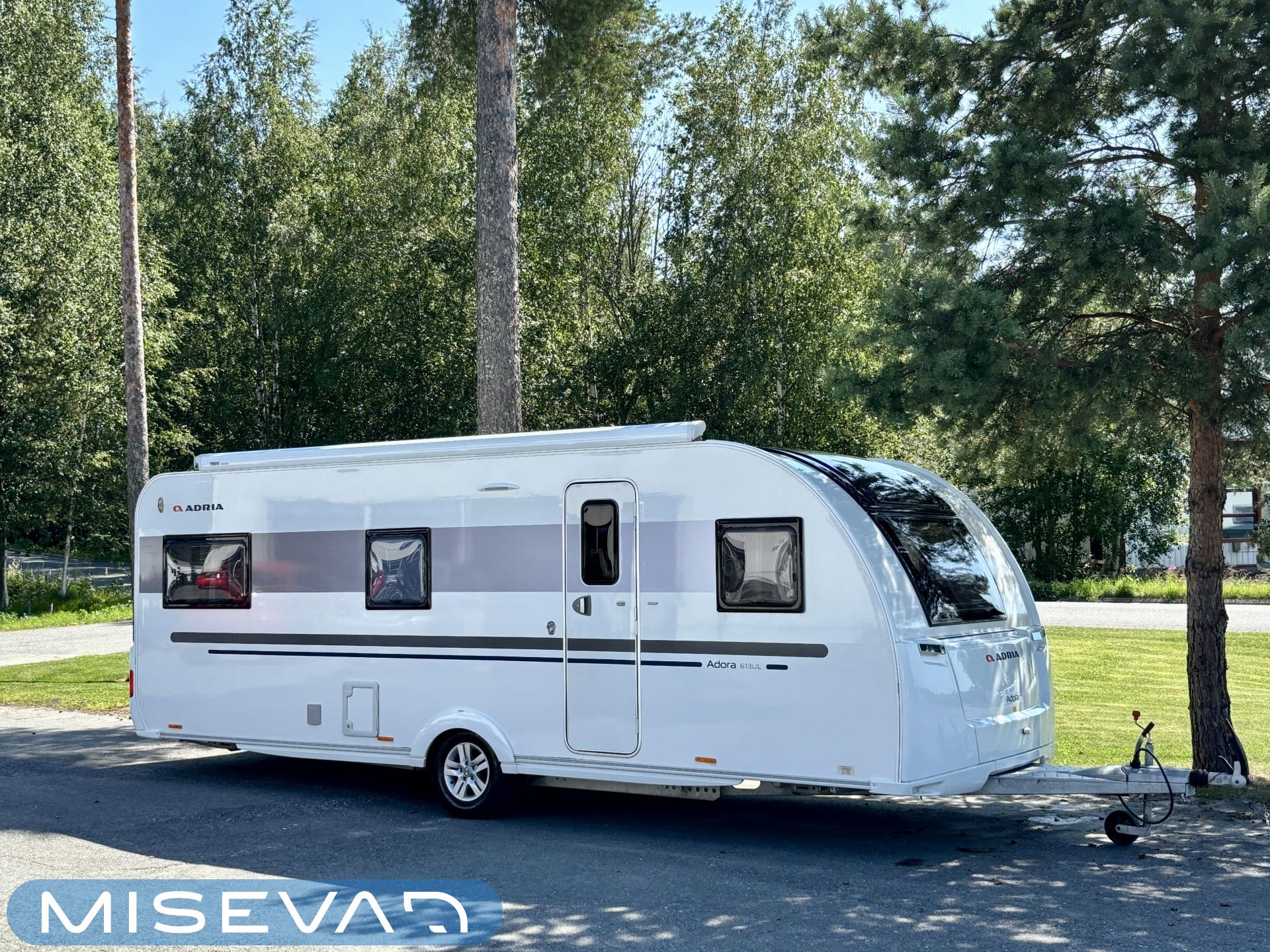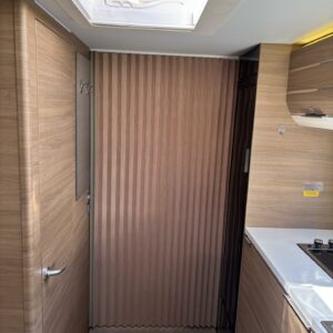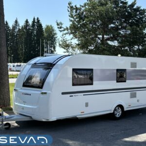Alde, Separata sängar, Kassettoalett, Kassettgardiner, Taklucka, Golvvärme, Golvmattor i boendedelen, Spis, Tvättho, Frysfack, Mikrovågsugn, Markis, Varmvattenberedare, Dusch, Elpatron, Stödben