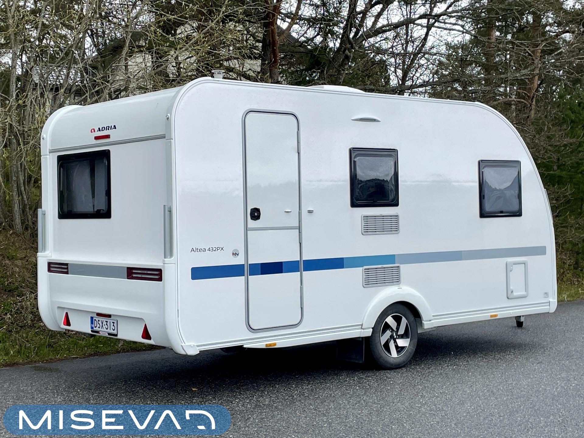 Truma, Kylskåp, Kassettoalett, Kassettgardiner, Taklucka, Spis, Varmvattenberedare, Frysfack, Parsäng, Tvättho, Elpatron, Stödben, Ilmastointi (asuintila), Tiiveystakuu voimassa, televisioteline, Asuinosan hyttysovi/verho, Specialfälgar, Golvmattor i boendedelen