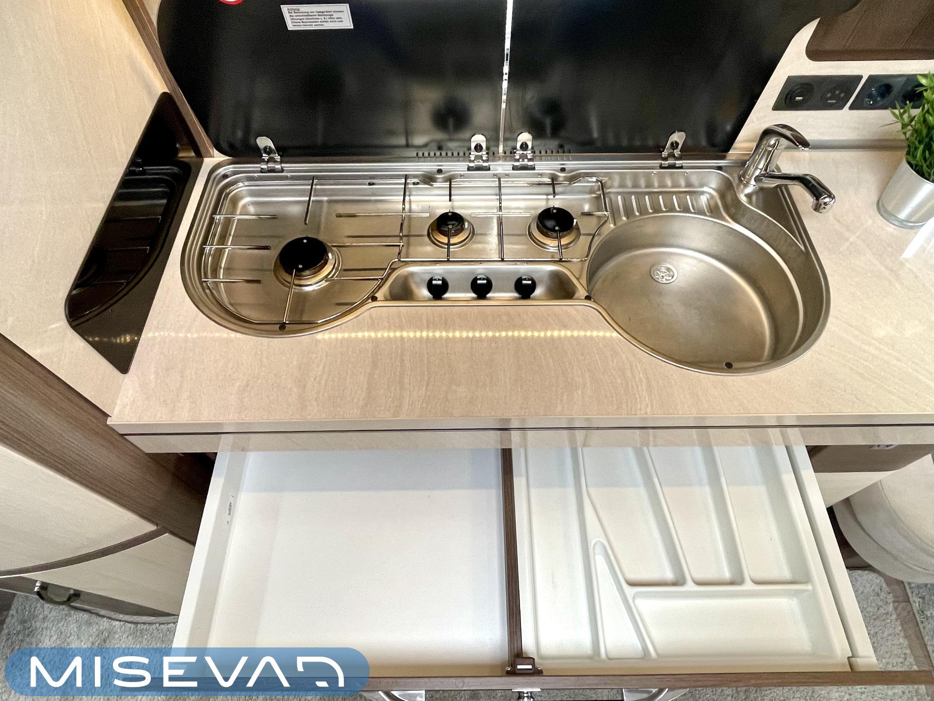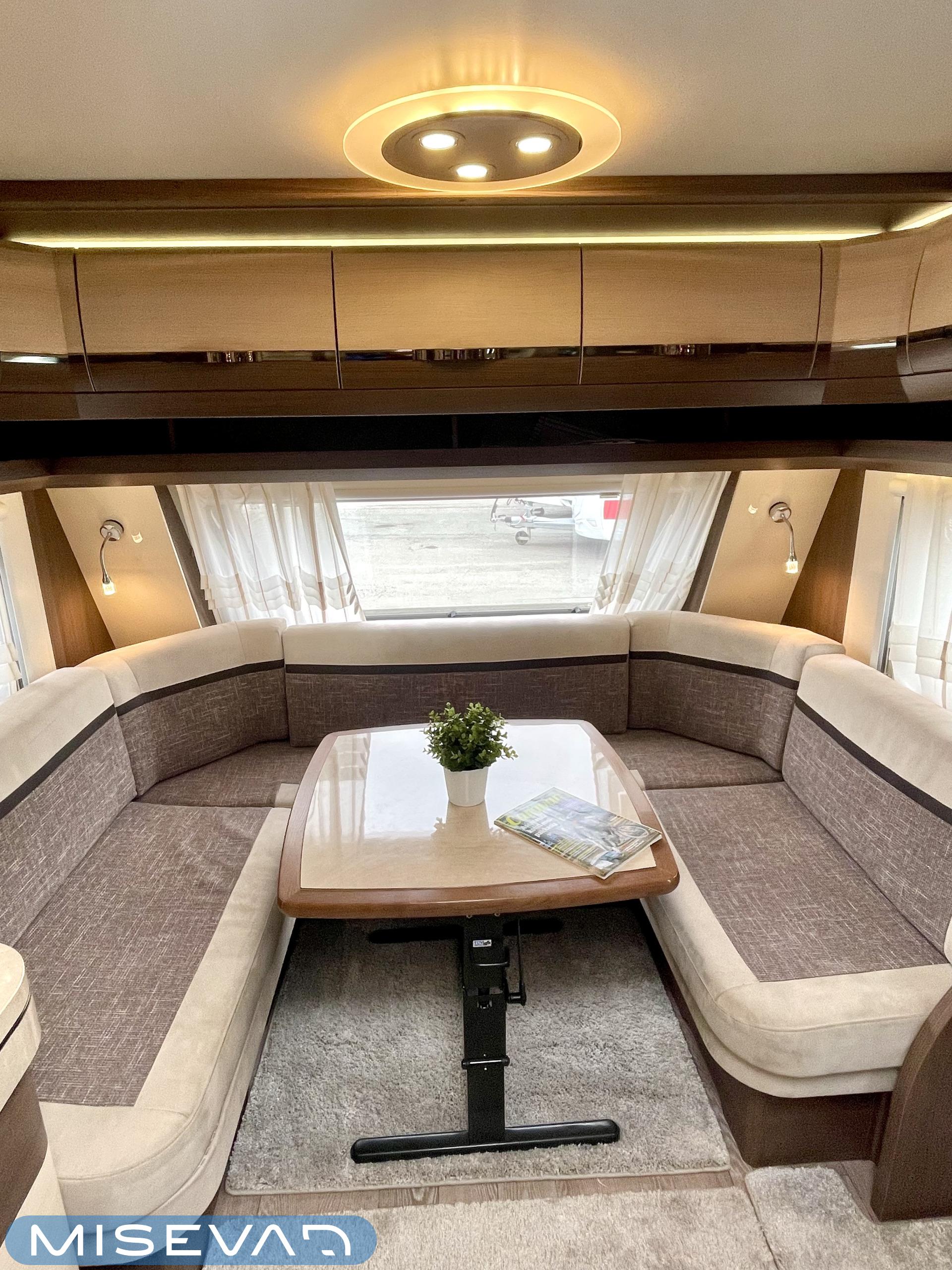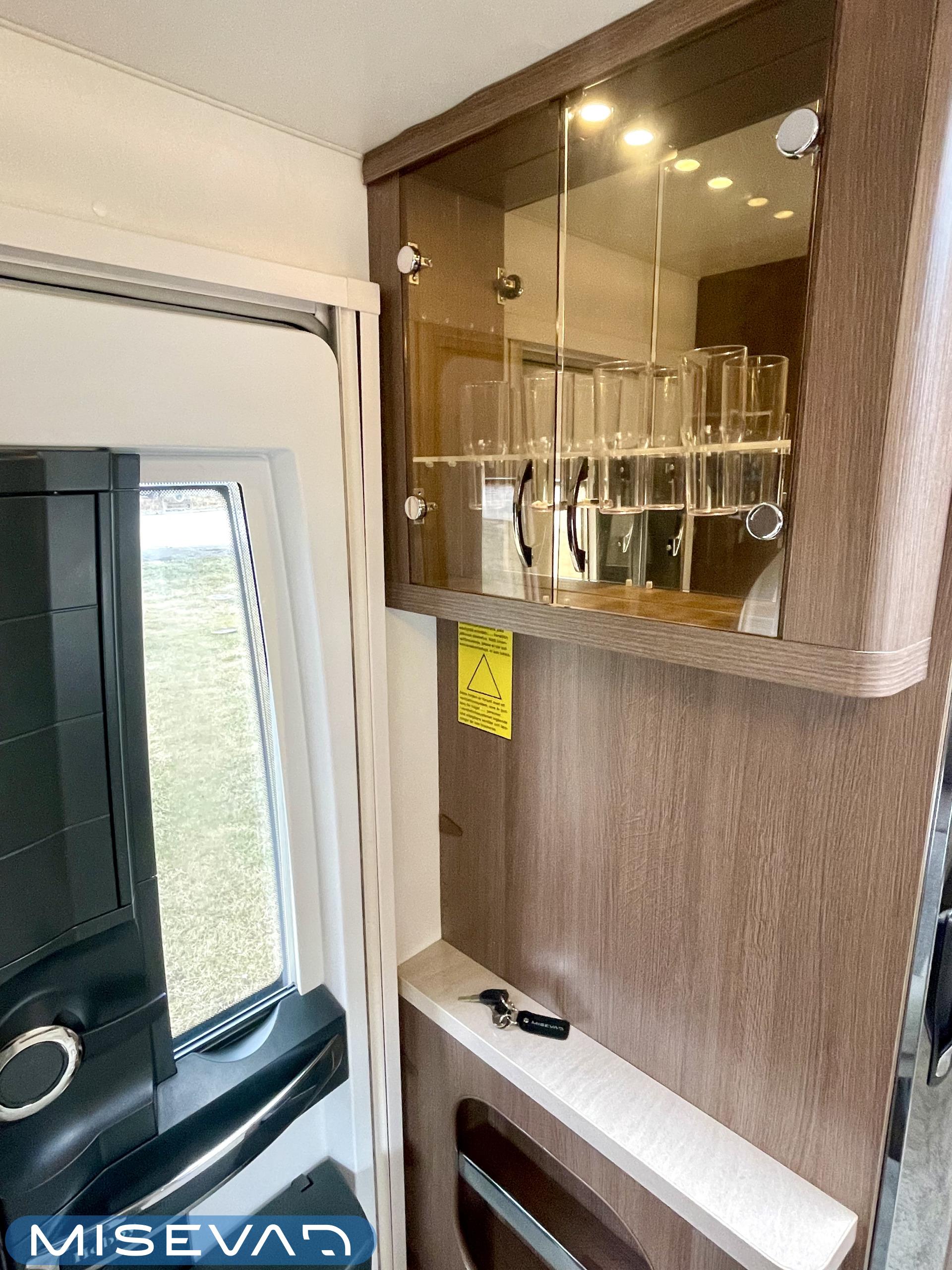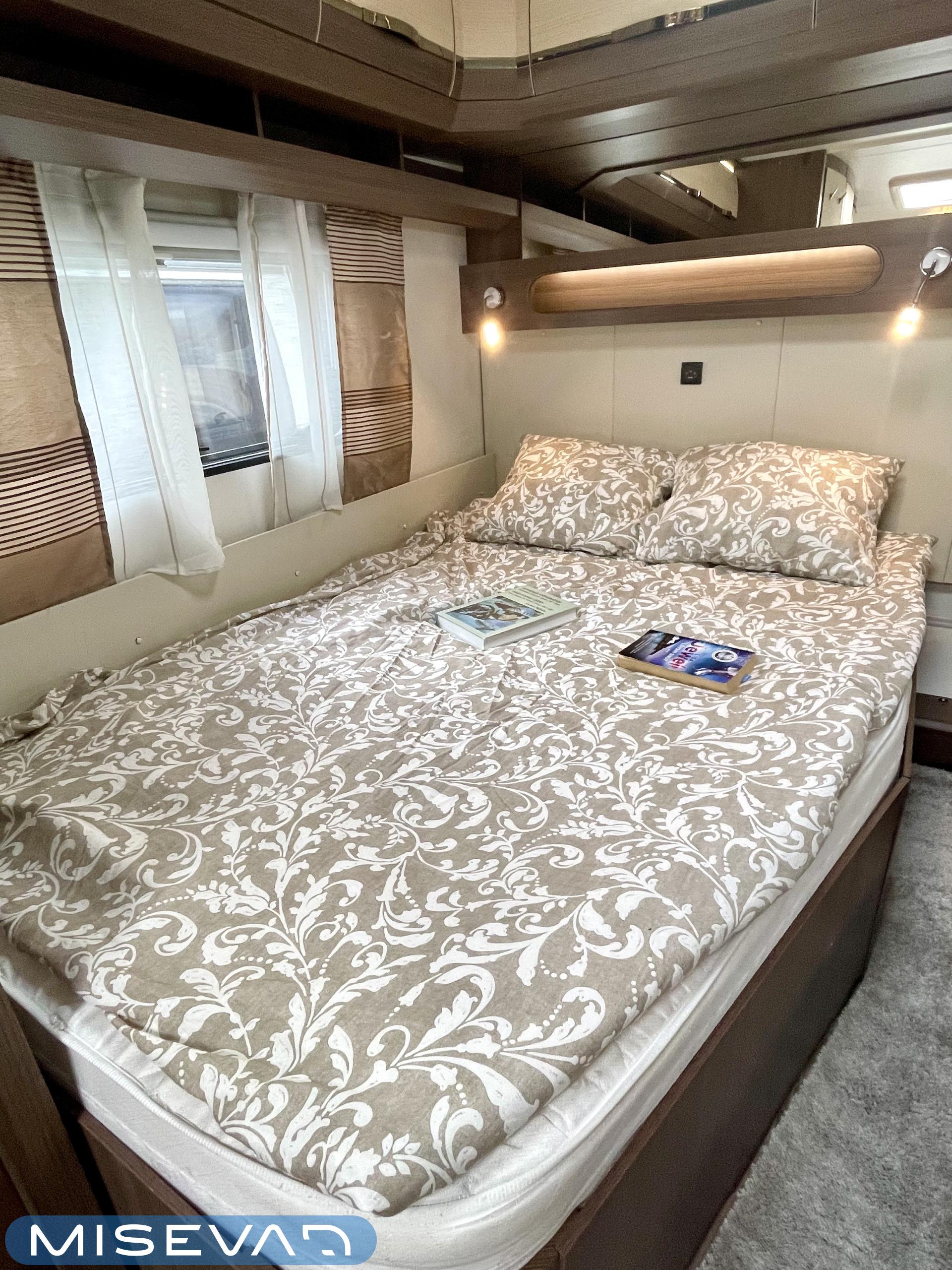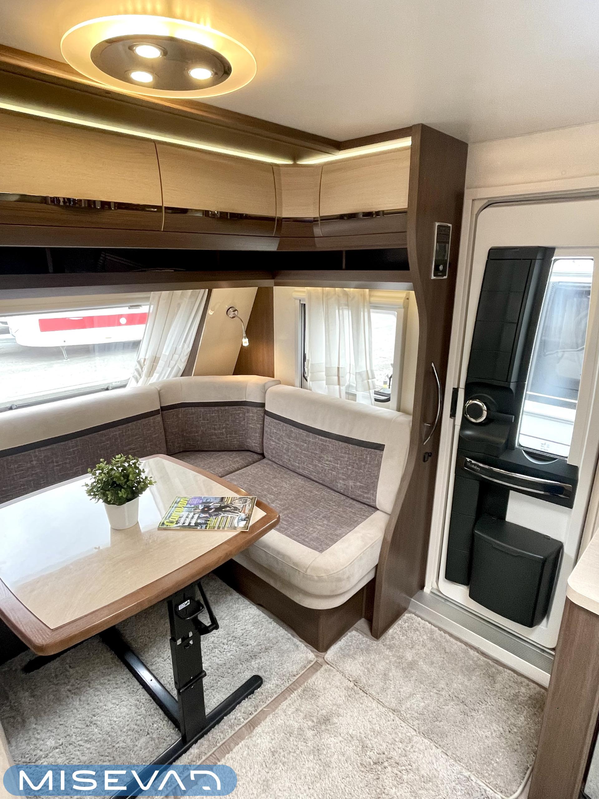 Alde, Elpatron, Kylskåp, Kassettoalett, Kassettgardiner, Taklucka, Våningssäng, Spis, Varmvattenberedare, Mikrovågsugn, Vätsecirkulationsvärme, Frysfack, Parsäng, Tvättho, Stödben, kwh-mittari