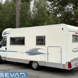 Truma, Kylskåp, Kassettoalett, Kassettgardiner, Taklucka, Golvvärme, Spis, Motorvärmare, Varmvattenberedare, Markis, Servostyrning, Frysfack, Parsäng, Tvättho, Radio, Dusch, Elektriska fönster, Elektriska speglar, Elektrisk trappa, Turbo, Lattialämmitys (sähkö), Ilmastointi (ohjaamo), Isolerad gråvattentank, Asuinosan hyttysovi/verho, Calori ajonaikainen lisälämmitin, Golvmattor i boendedelen