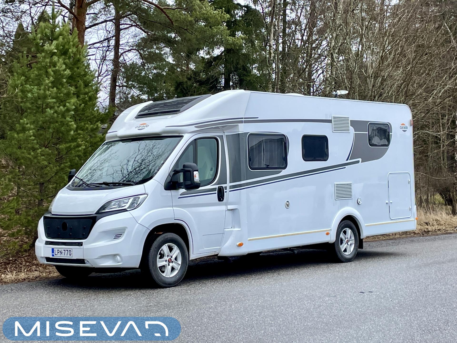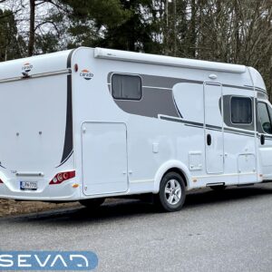 Solpanel, Separata sängar, Luftkonditionering i körutrymmet, Kylskåp, Två däck, Kassettoalett, Kassettgardiner, Taklucka, Golvvärme, Spis, Varmvattenberedare, Markis, Servostyrning, Pysäköintikamera, Elpatron, Trumatic, JP-huollot ok, Tupla-akut, Multimedialaite (sis. p-kamera, navi, Spelare, bluetooth, handsfree), laskuvuode, Elektrisk trappa, Vakionopeudensäädin, ABS-bromsar, Airbag, System för stabilitetskontroll, Bildator, Specialfälgar, Keskuslukitus: Kaukosäätöinen, Centralvärme, Golvmattor i boendedelen, Slirskydd, Navigator, Frysfack, Tvättho, Dusch, Elektriska fönster, Elektriska speglar, 2 (ok) renkaat, Kesärenkaat, Talvirenkaat(nasta), Invertteri, Asuinosan hyttysovi/verho