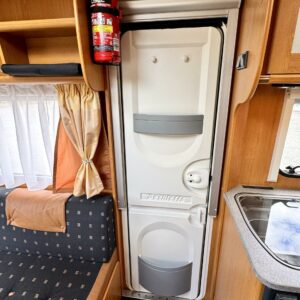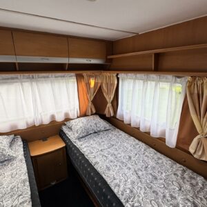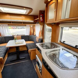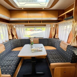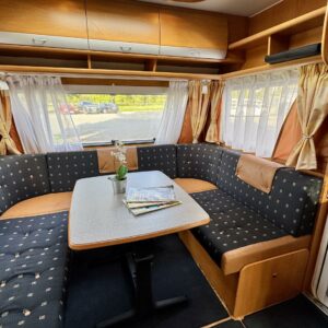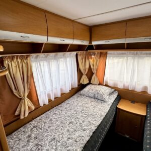 Alde, Elpatron, Två däck, Markis, kwh-mittari, Kylskåp, Kassettoalett, Kassettgardiner, Taklucka, Spis, Tvättho, Parsäng, Frysfack, Stödben