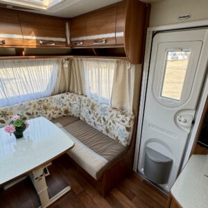 Alde, Separata sängar, Kylskåp, Kassettoalett, Kassettgardiner, Taklucka, Golvvärme, Spis, Varmvattenberedare, Vätsecirkulationsvärme, Frysfack, Tvättho, Elpatron, Stödben, Ilmastointi (asuintila), Lattialämmitys (sähkö)
