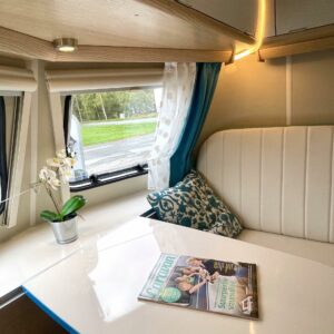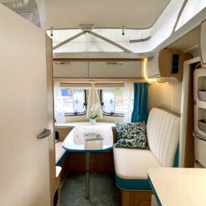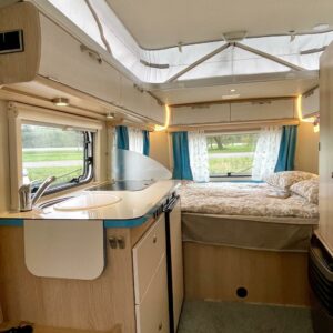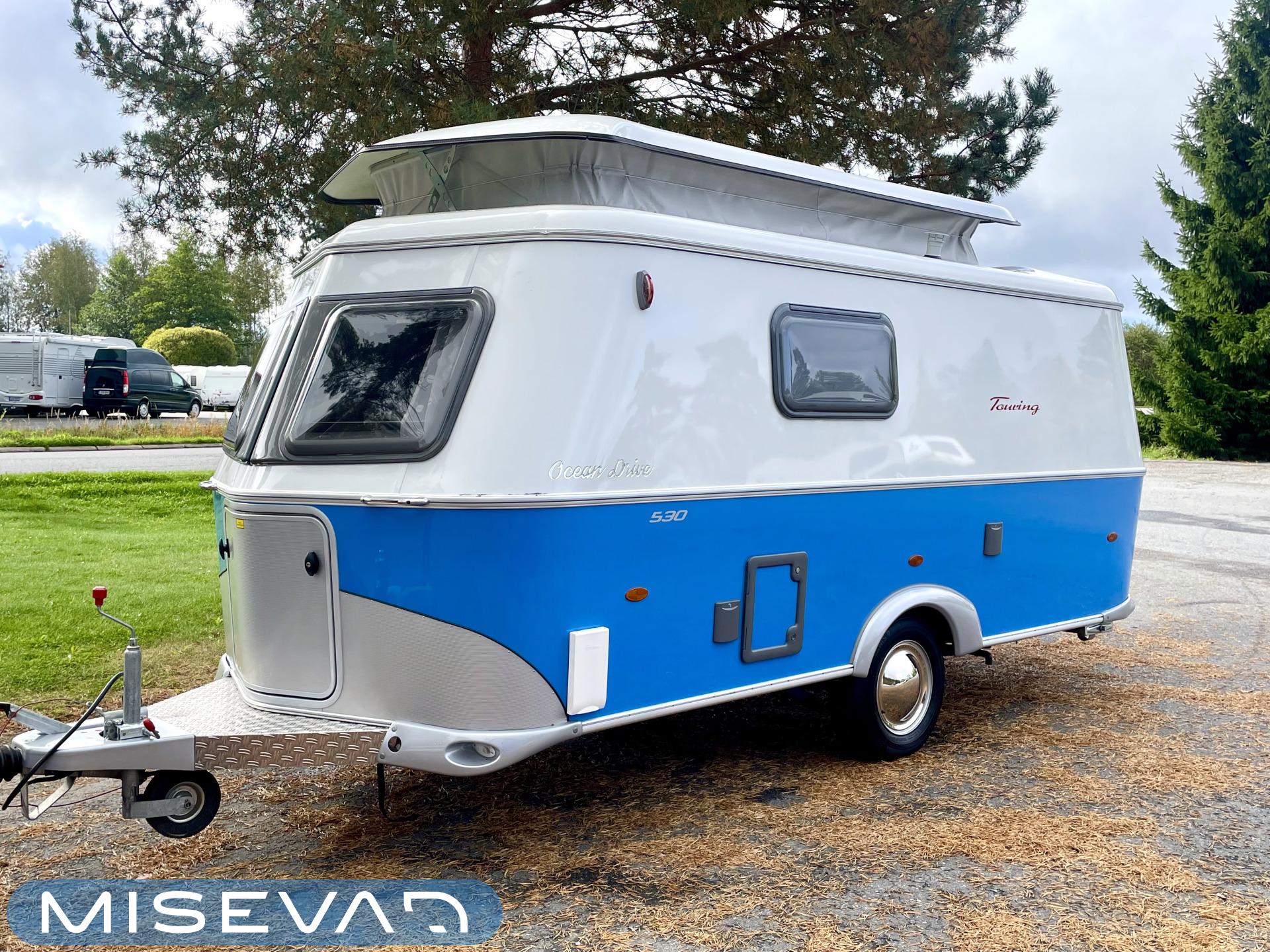 Truma, Kylskåp, Kassettoalett, Taklucka, Golvmattor i boendedelen, Spis, Varmvattenberedare, Markis, Frysfack, Parsäng, Tvättho, Elpatron, Stödben, Asuinosan hyttysovi/verho, Nostokatto