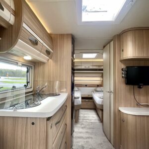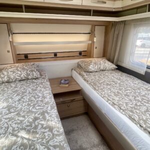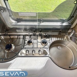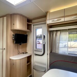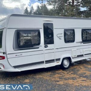 Separata sängar, Kylskåp, Kassettoalett, Kassettgardiner, Taklucka, Centralvärme, Golvvärme, Golvmattor i boendedelen, Spis, Varmvattenberedare, Frysfack, Tvättho, Elpatron, Trumatic, Stödben, kwh-mittari, liesituuletin