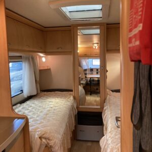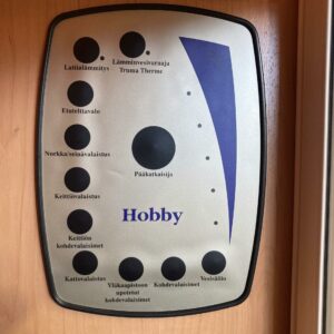 Truma, Separata sängar, Kylskåp, Kassettoalett, Kassettgardiner, Takstänger/stege, Taklucka, Golvvärme, Spis, Varmvattenberedare, Frysfack, Tvättho, Elpatron, TV-antenni tai lautasantenni, Stödben, Lattialämmitys (sähkö), sähkön ulosotto, televisio