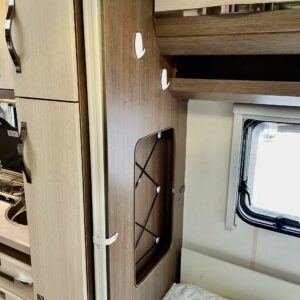 Alde, kwh-mittari, ranskalainen vuode, Kylskåp, Kassettoalett, Kassettgardiner, Taklucka, Golvvärme, Spis, Varmvattenberedare, Vätsecirkulationsvärme, Frysfack, Parsäng, Tvättho, Elpatron, Stödben, Lattialämmitys (sähkö), jenkkijääkaappi, liesituuletin, Asuinosan hyttysovi/verho, Gasugn, sähkön ulosotto, televisioteline, Golvmattor i boendedelen, TV-antenni tai lautasantenni, Markis, Cykelställ