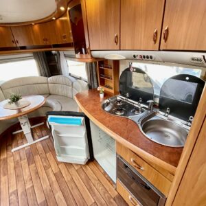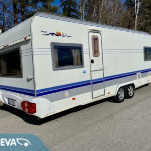Separata sängar, Kylskåp, Gasugn, Kassettoalett, Kassettgardiner, Taklucka, Spis, Varmvattenberedare, Läderinredning, Frysfack, Tvättho, Elpatron, TV-antenni tai lautasantenni, Trumatic, Stödben