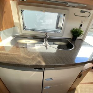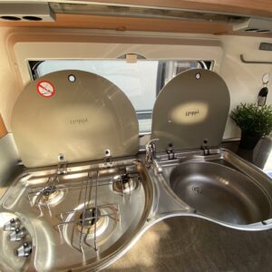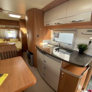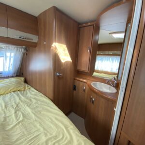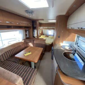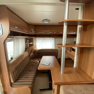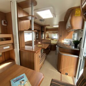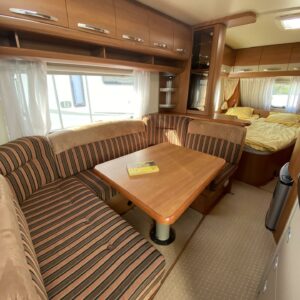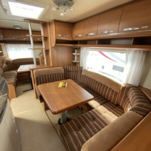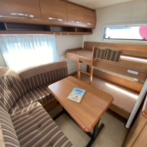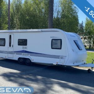 Kylskåp, Kassettoalett, Kassettgardiner, Taklucka, Våningssäng, Golvmattor i boendedelen, Spis, Varmvattenberedare, Markis, Frysfack, Parsäng, Tvättho, Cykelställ, Dusch, Elpatron, Trumatic, Stödben, Lattialämmitys (sähkö), Kesärenkaat, pullonvaihtaja, sähkön ulosotto