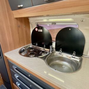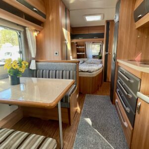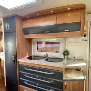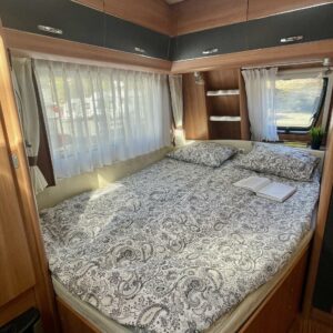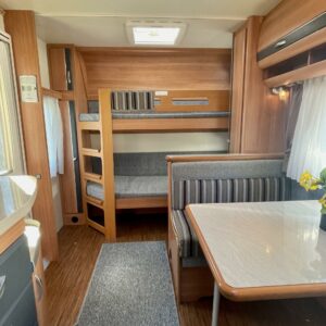 Kylskåp, Kassettoalett, Taklucka, Våningssäng, Spis, Markis, Frysfack, Parsäng, Tvättho, Dusch, Elpatron, Trumatic, Stödben, Kassettgardiner, Varmvattenberedare