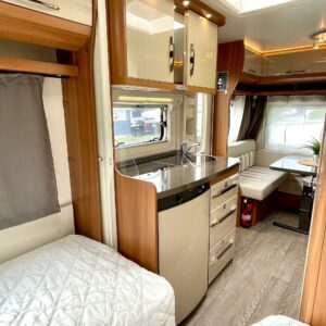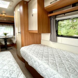 Truma, Separata sängar, Kylskåp, Kassettoalett, Kassettgardiner, Taklucka, Golvvärme, Spis, Varmvattenberedare, Frysfack, Tvättho, Elpatron, TV-antenni tai lautasantenni, Stödben, Lattialämmitys (sähkö), mover, liesituuletin, sähkön ulosotto, Asuinosan hyttysovi/verho