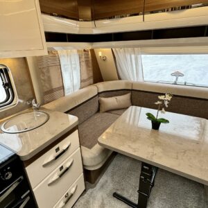 Alde, Separata sängar, Kassettgardiner, Kassettoalett, Gasugn, Kylskåp, Golvvärme, Golvmattor i boendedelen, Spis, Varmvattenberedare, Markis, Vätsecirkulationsvärme, Frysfack, Tvättho, Cykelställ, Dusch, Elpatron, TV-antenni tai lautasantenni, Stödben, Taklucka, Takstänger/stege, kwh-mittari, sähkön ulosotto, televisioteline, Asuinosan hyttysovi/verho
