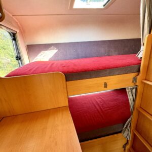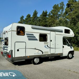 Luftkonditionering i körutrymmet, Kylskåp, Två däck, Kassettoalett, Kassettgardiner, Taklucka, Våningssäng, Centralvärme, Startspärr, Golvmattor i boendedelen, Spis, Motorvärmare, Varmvattenberedare, Markis, Servostyrning, Frysfack, Parsäng, Cykelställ, Radio, Dusch, Trumatic, Turbo
