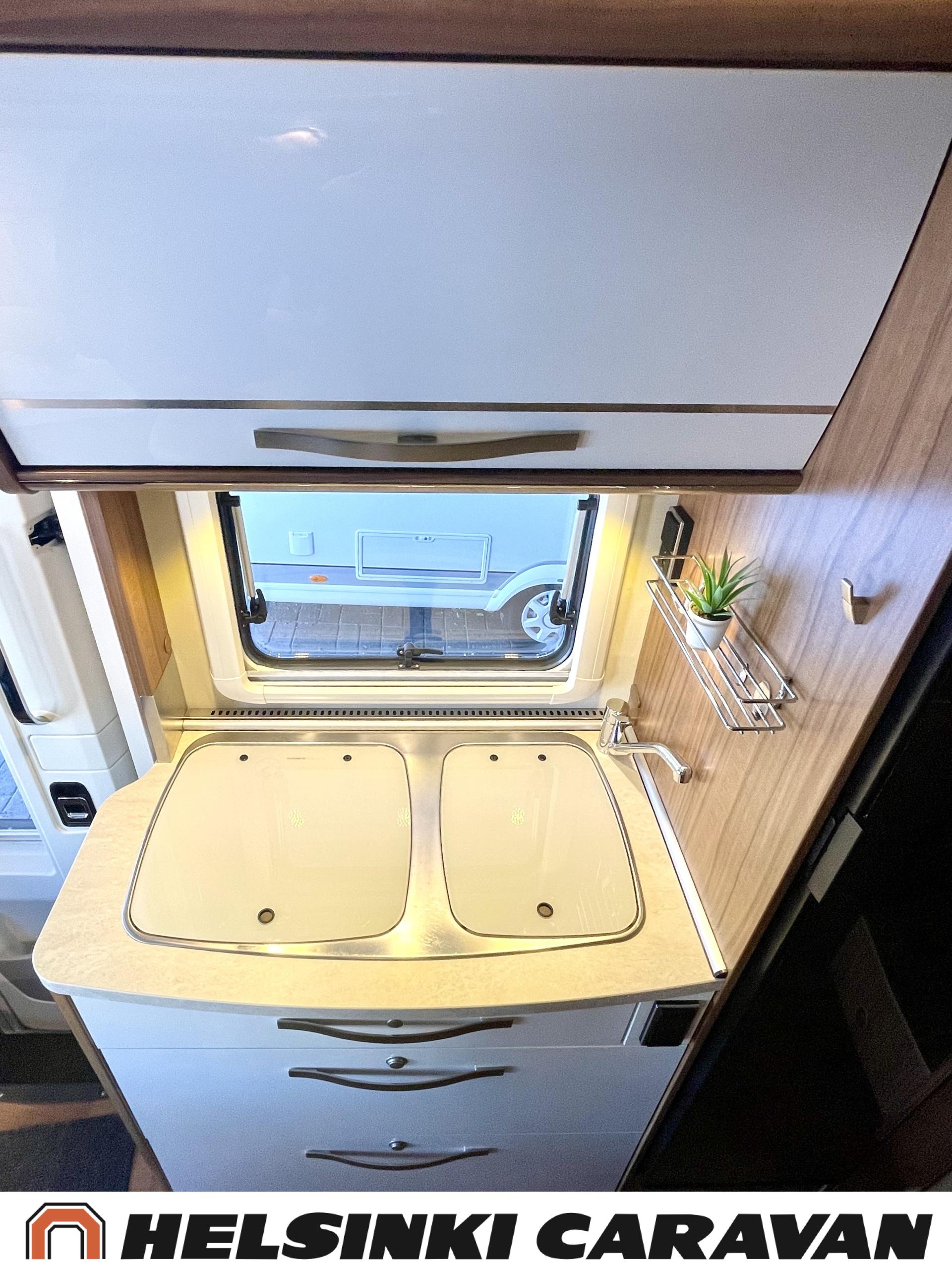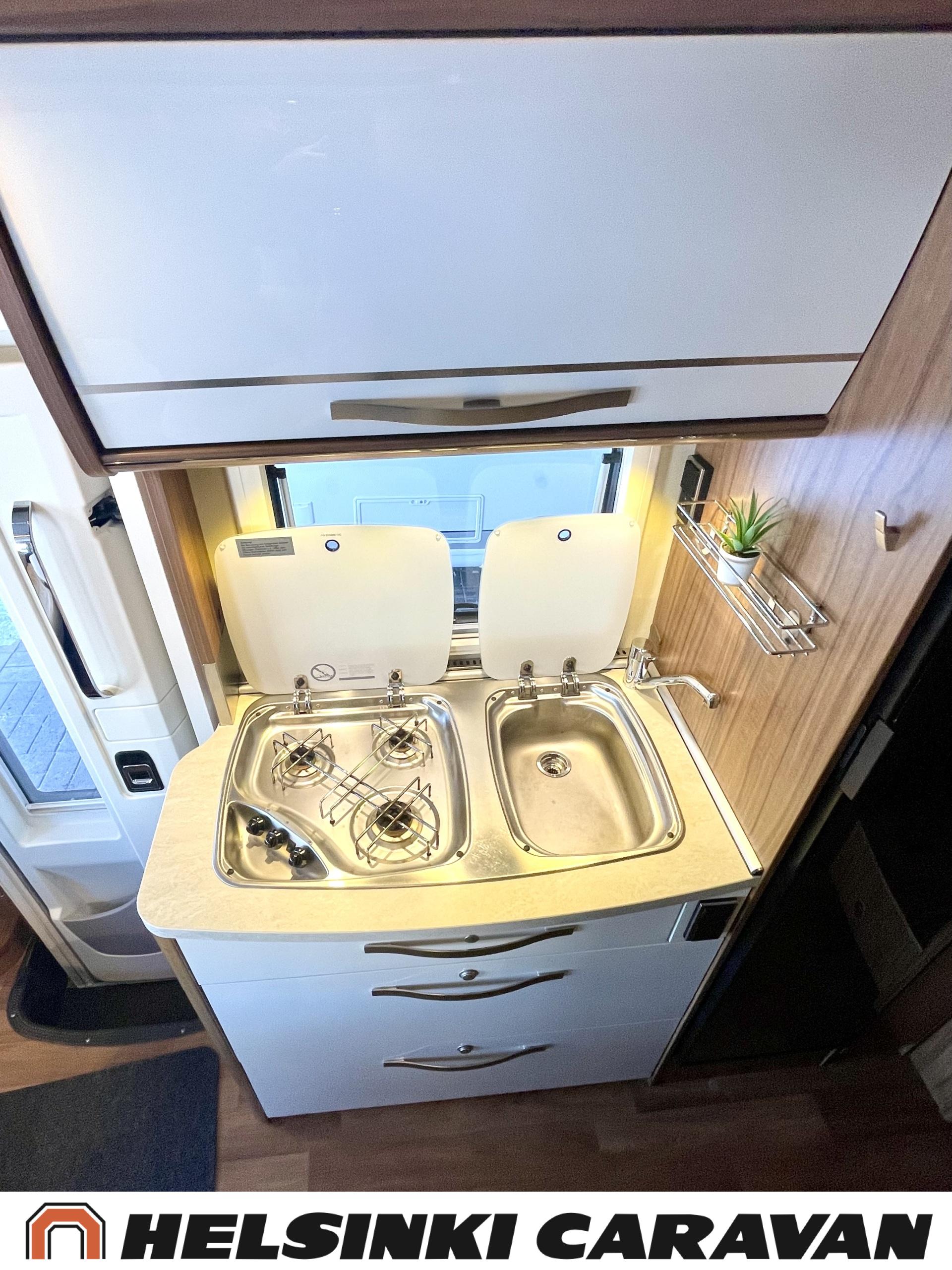 ABS-bromsar, Airbag, Bluetooth, Specialfälgar, Luftkonditionering i körutrymmet, Kylskåp, Kassettoalett, Kassettgardiner, Taklucka, Spis, Tvättho, Cykelställ, Dusch, Elektriska fönster, Trumatic, Vakionopeudensäädin, Elpatron, Markis, kaasun ulosotto, Dragkrok