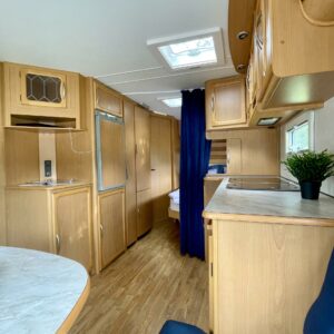 Alde, Kylskåp, Kassettoalett, Kassettgardiner, Taklucka, Vätsecirkulationsvärme, Frysfack, Parsäng, Tvättho, Radio, Elpatron, Stödben, TV-antenni tai lautasantenni