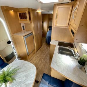 Alde, Kylskåp, Kassettoalett, Kassettgardiner, Taklucka, Golvvärme, Spis, Golvmattor i boendedelen, Varmvattenberedare, Vätsecirkulationsvärme, Frysfack, Tvättho, Elpatron, TV-antenni tai lautasantenni, Stödben