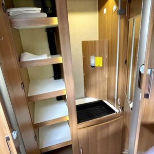 Alde, Kylskåp, Gasugn, Kassettoalett, Taklucka, Golvvärme, Spis, Vätsecirkulationsvärme, Dusch, Stödben, Ilmastointi (asuintila), kwh-mittari, kaasun ulosotto, sähkön ulosotto, suihkun ulosotto