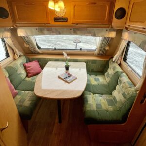 Stödben, Elpatron, Dusch, Tvättho, Frysfack, Varmvattenberedare, Spis, Lattialämmitys- nestekiertoinen, Taklucka, Kassettgardiner, Kasetti- WC, Isolerad gråvattentank, Separata sängar, Alde- nestekiertoinen keskuslämmitys, Sähkön ulosotto----------------------------------