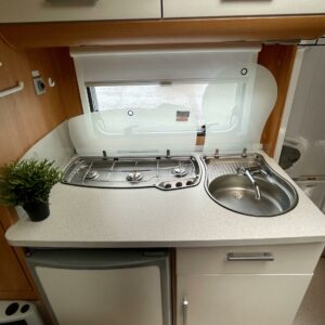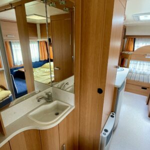 Kassettgardiner, Kassettoalett, Kylskåp, Taklucka, Våningssäng, Golvvärme, Spis, Varmvattenberedare, Tvättho, Parsäng, Frysfack, Elpatron, TV-antenni tai lautasantenni, Trumatic, Stödben