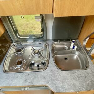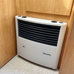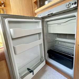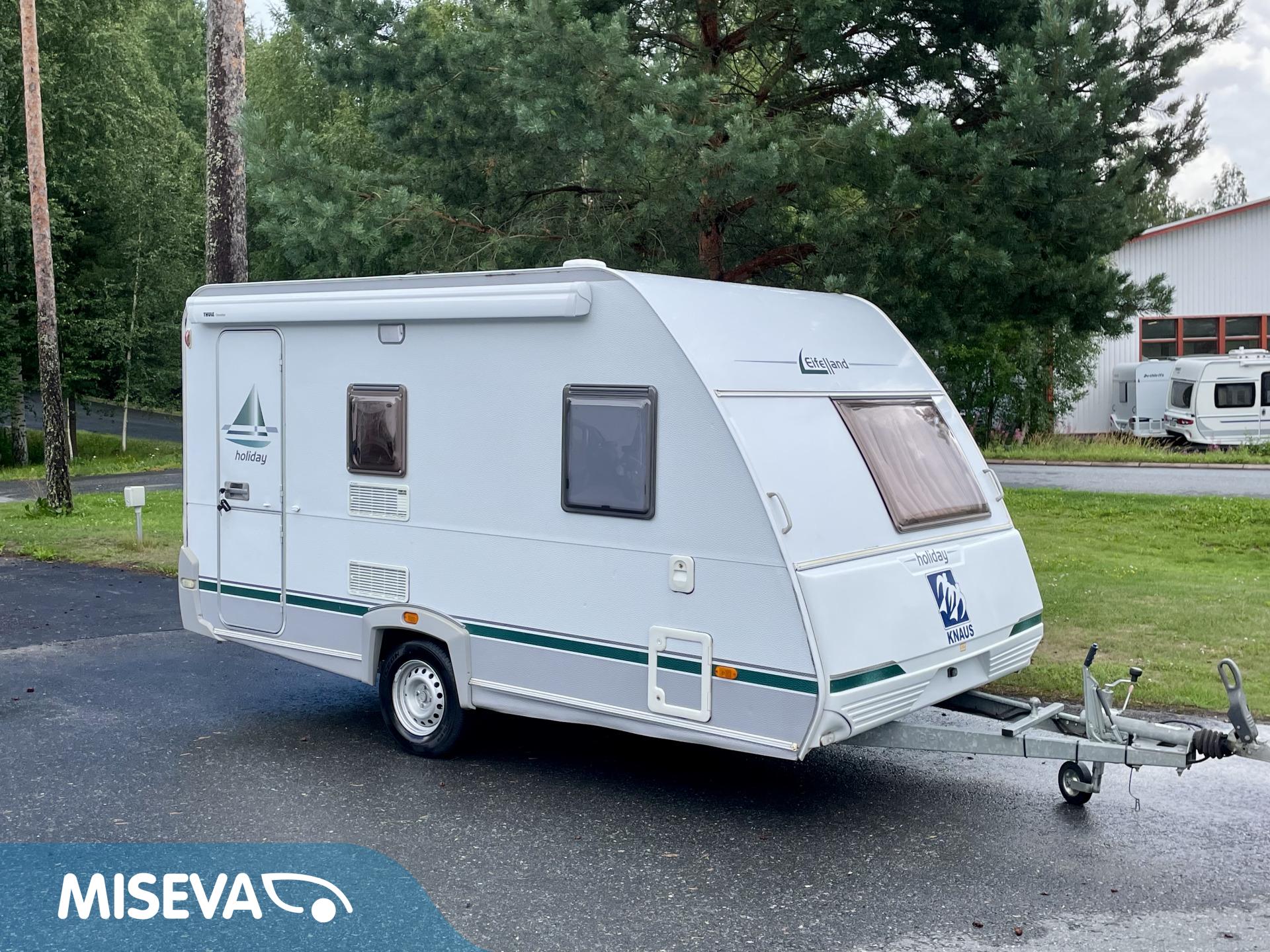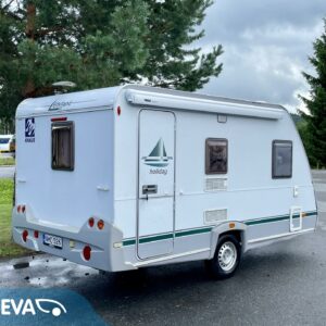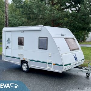 Kylskåp, Kassettoalett, Kassettgardiner, Taklucka, Spis, Varmvattenberedare, Markis, Frysfack, Parsäng, Tvättho, Dusch, Elpatron, Stödben, Kesärenkaat, televisioteline