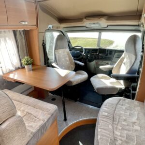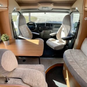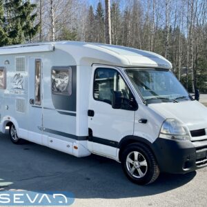 Truma, Polkupyöräteline, Tupla-akut, ranskalainen vuode, jenkkijääkaappi, ohjaamon kasettiverhot, Peruutuskamera, Kassettoalett, Taklucka, Spis, Markis, Servostyrning, Parsäng, Tvättho