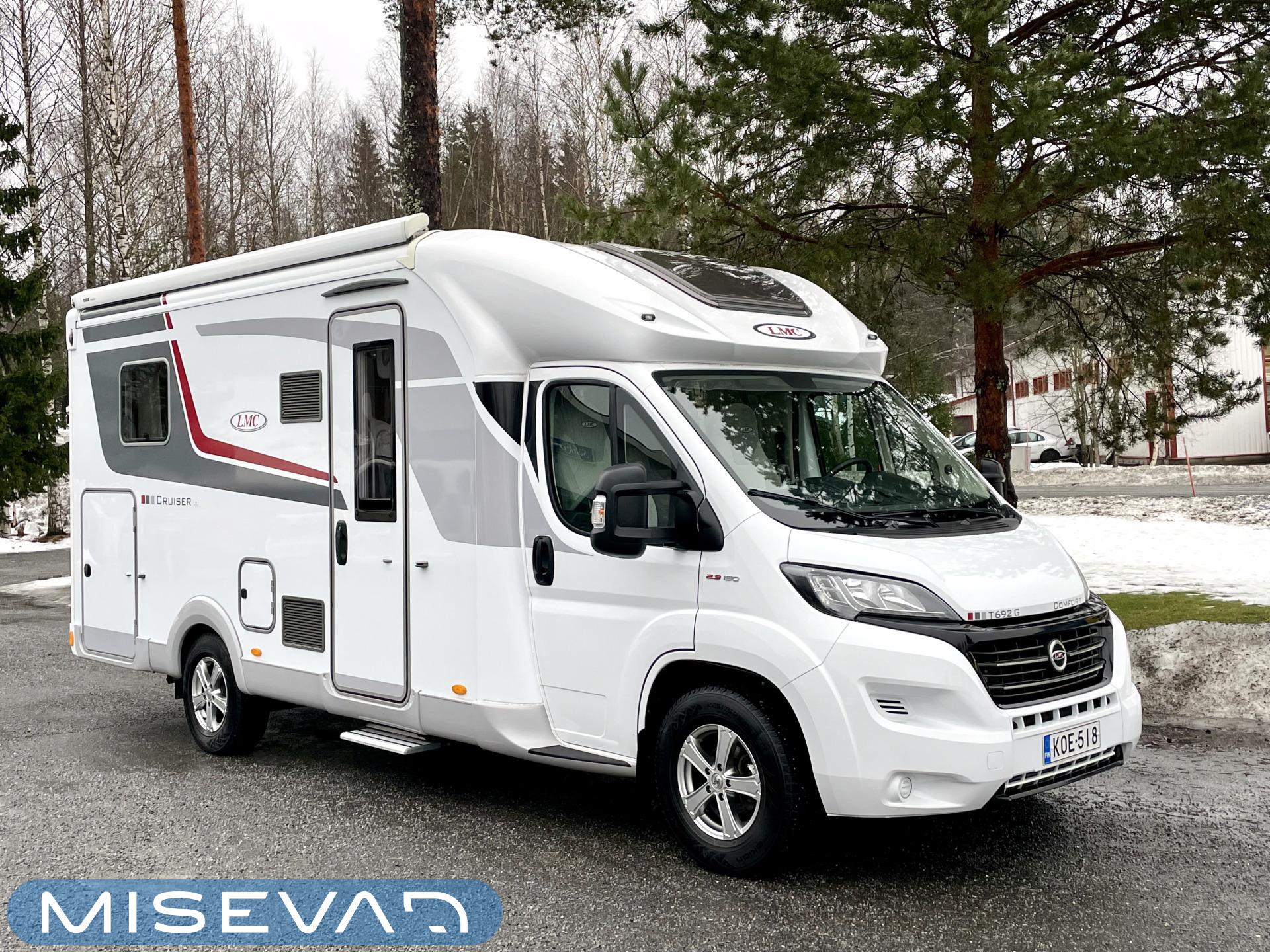 Två däck, Markis, Airbag, ABS-bromsar, System för stabilitetskontroll, Parsäng, Luftkonditionering i körutrymmet, Ilmastointi: Manuaalinen, Kylskåp, Kassettoalett, Kassettgardiner, Taklucka, Keskuslukitus: Kaukosäätöinen, Startspärr, Spis, Slirskydd, Navigator, Servostyrning, Frysfack, Radio, Dusch, Elektriska fönster, Elektriska speglar, Elektrisk trappa, TV-antenni tai lautasantenni, Turbo, Vakionopeudensäädin, Pysäköintikamera, Tvättho, Varmvattenberedare, Isolerad gråvattentank, Specialfälgar, Cykelställ, Trumatic