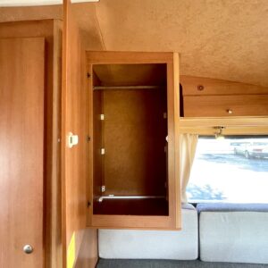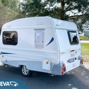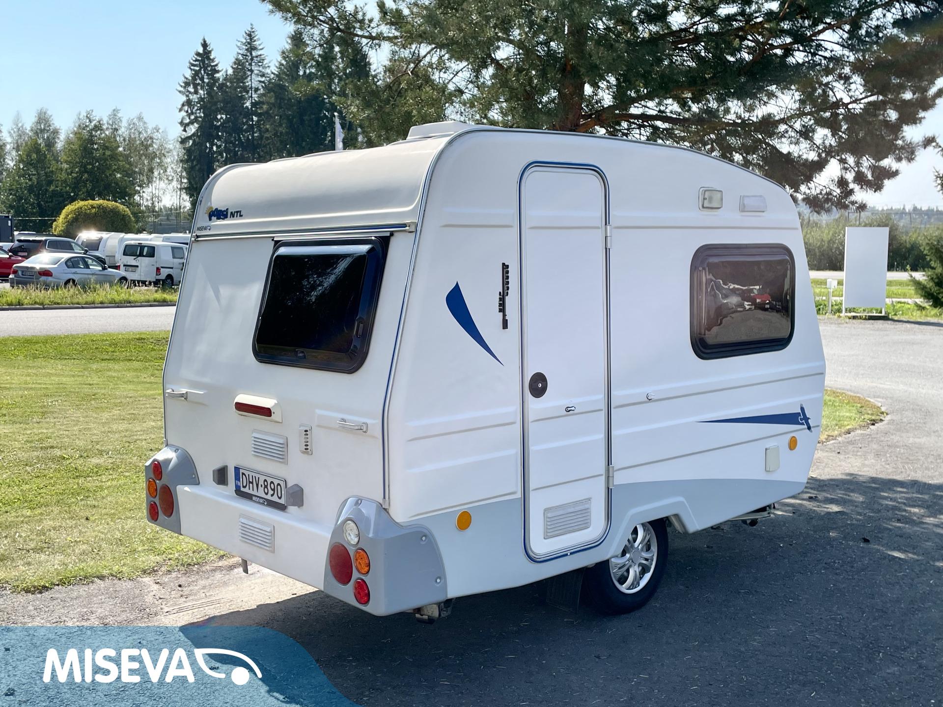 Separata sängar, Kylskåp, Kassettoalett, Kassettgardiner, Taklucka, Centralvärme, Spis, Frysfack, Tvättho, Trumatic, Stödben
