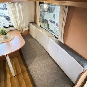 Kylskåp, Kassettoalett, Bakre kök, Lattialämmitys (sähkö), Trumatic, Spis, Taklucka, Golvvärme, Stödben