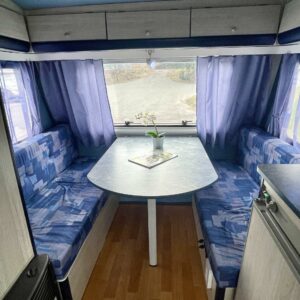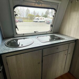Kassettoalett, Kylskåp, Taklucka, Golvvärme, Spis, Tvättho, Frysfack, Trumatic, Stödben