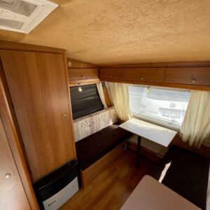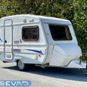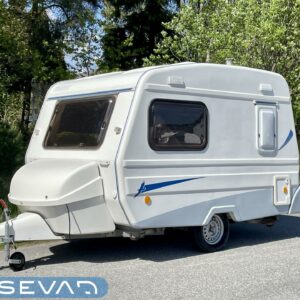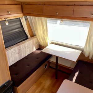 Kylskåp, Kassettoalett, Taklucka, Spis, Tvättho, Bakre kök, Trumatic, Stödben, Lattialämmitys (sähkö)