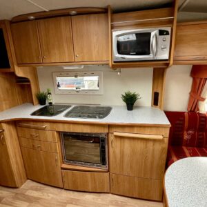 Alde, Specialfälgar, Kylskåp, Gasugn, Kassettoalett, Kassettgardiner, Taklucka, Spis, Varmvattenberedare, Mikrovågsugn, Vätsecirkulationsvärme, Frysfack, Parsäng, Tvättho, Dusch, Elpatron, Stödben, Lattialämmitys (nestekierto), kwh-mittari, sähkön ulosotto