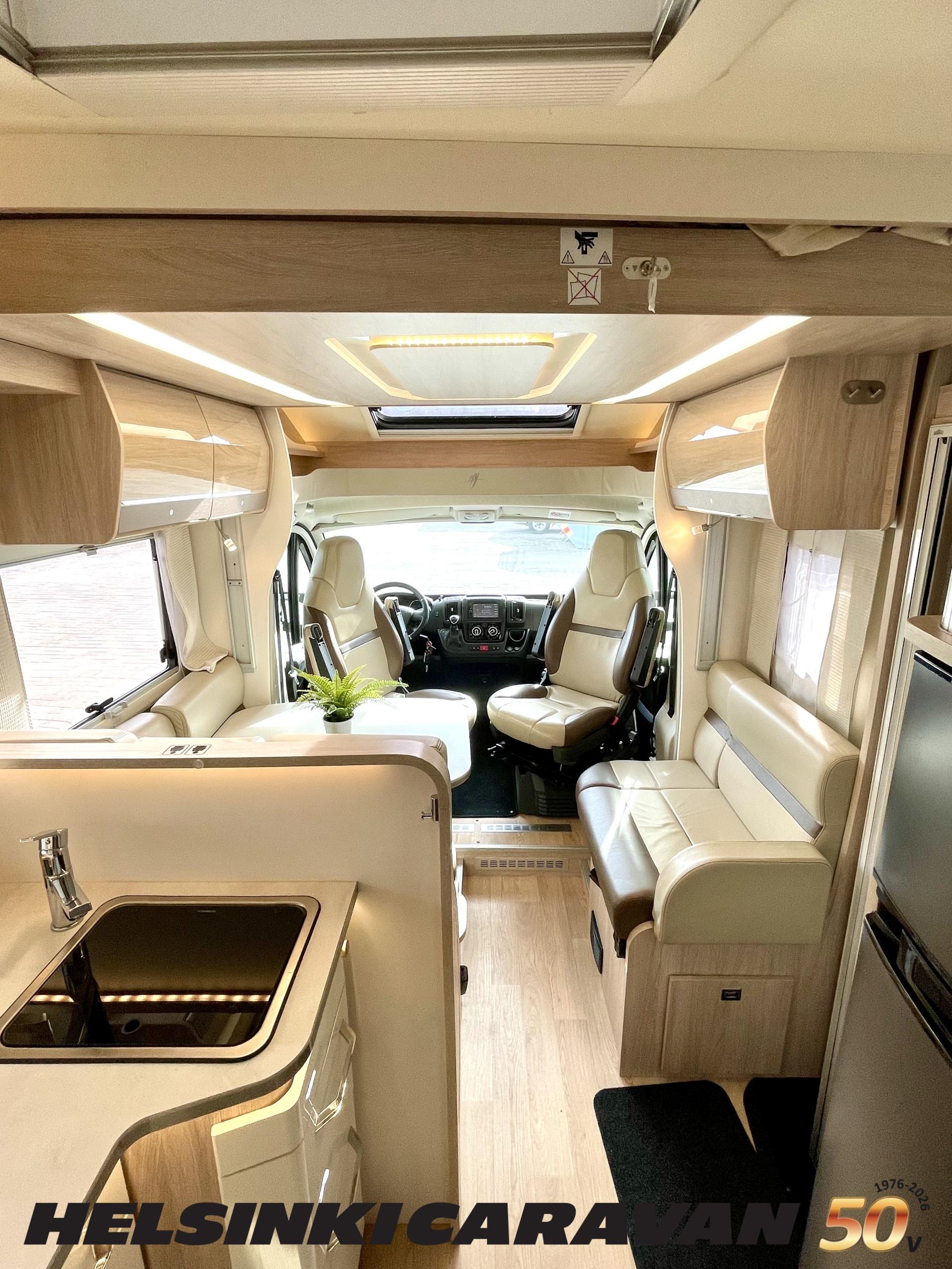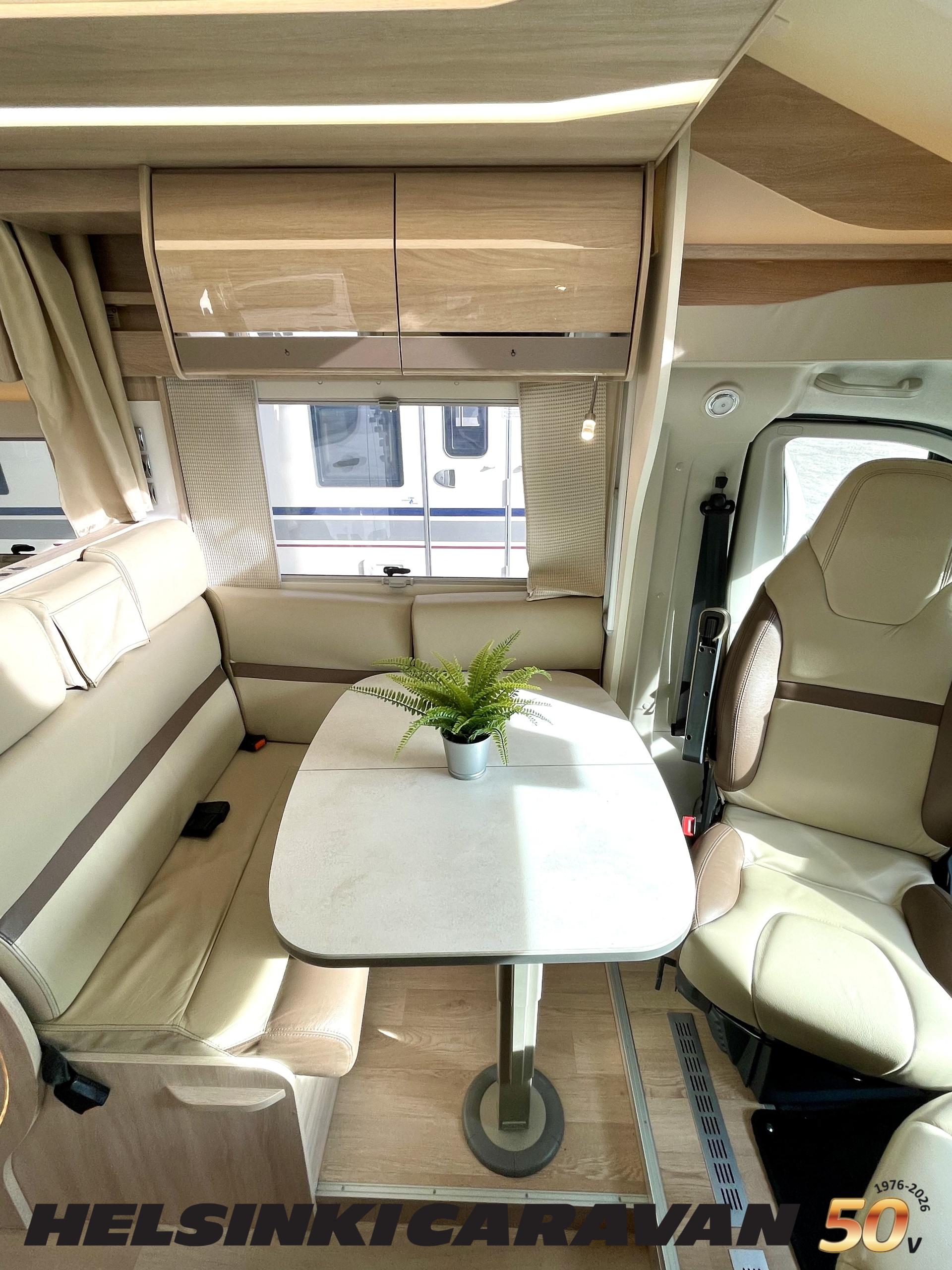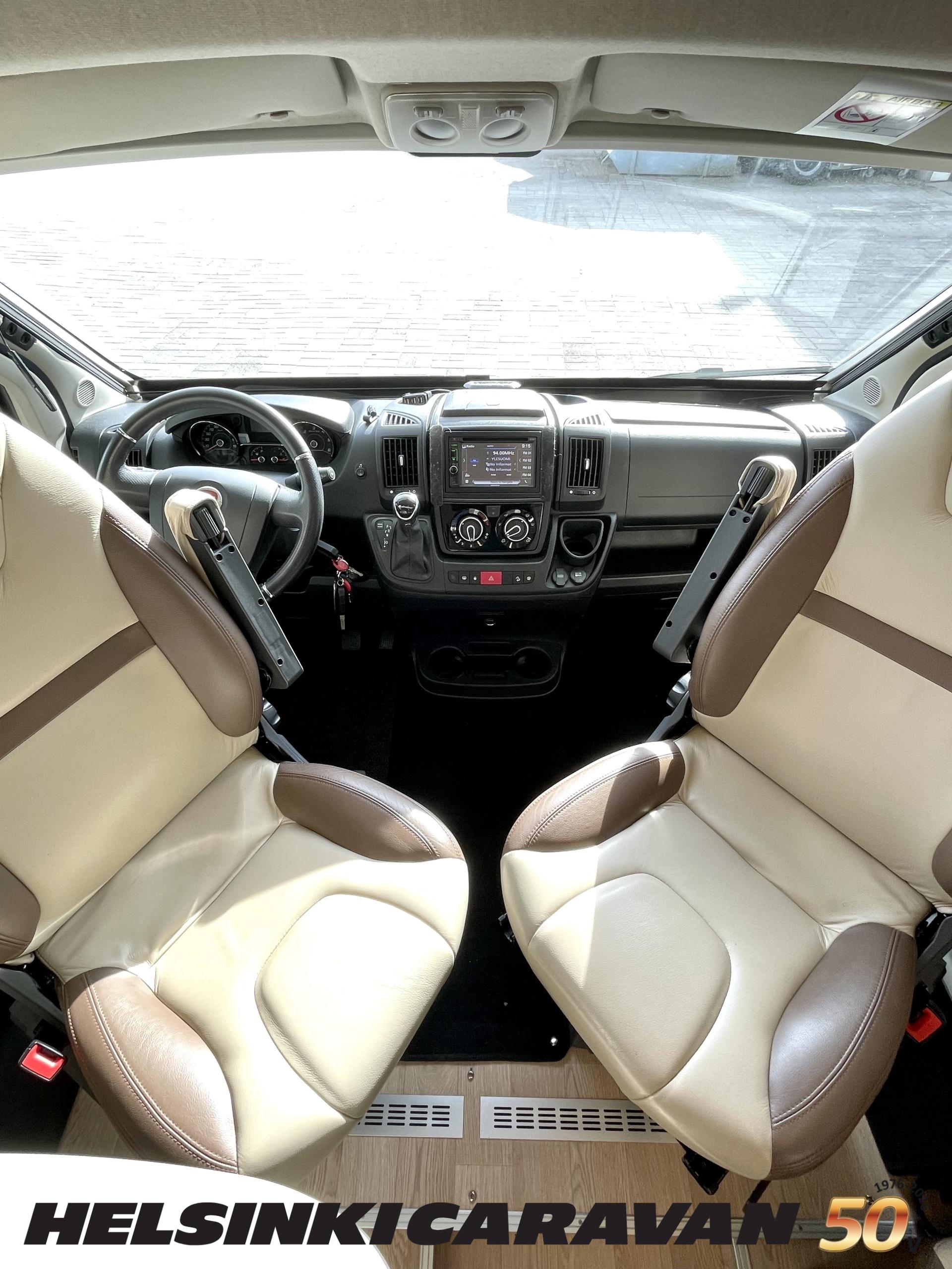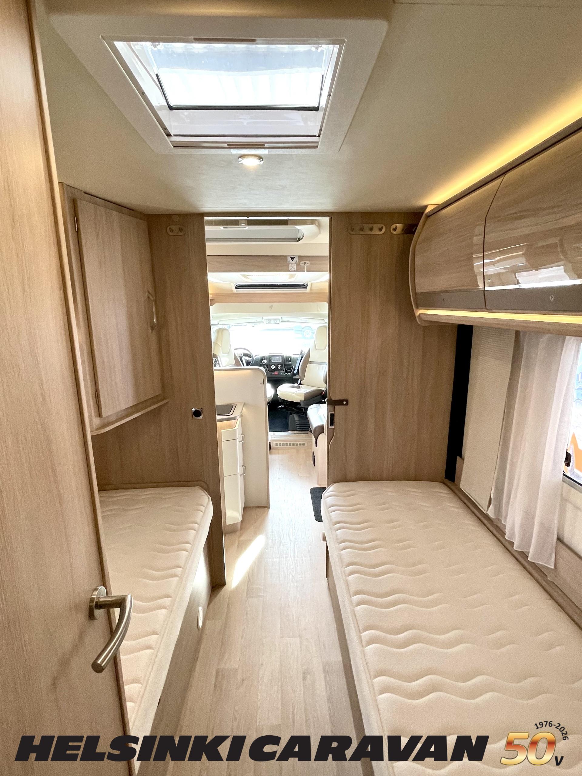 ABS-bromsar, Airbag, Bildator, Solpanel, Specialfälgar, Servicebok, Luftkonditionering i körutrymmet, Kylskåp, Kassettoalett, Kassettgardiner, Taklucka, Keskuslukitus: Avaimella, Startspärr, Spis, Motorvärmare, Slirskydd, Varmvattenberedare, Markis, Navigator, Servostyrning, Frysfack, Tvättho, Pysäköintikamera, Radio, Dusch, Elektriska fönster, Elpatron, Elektriska speglar, Elektrisk trappa, Trumatic, Turbo, Dragkrok, Vakionopeudensäädin, Mikrovågsugn, Separata sängar, Truma, Ilmastointi (ohjaamo), Vakionopeuden säädin, JP-huollot ok, Huoltokirja ok, Kesärenkaat, 1 x kevytmet.vanteet, ohjaamon kasettiverhot, Peruutuskamera, Asuinosan hyttysovi/verho, liukuoven softlock, Isolerad gråvattentank, System för stabilitetskontroll, Äänentoistojärjestelmä, Ilmastointi: Automaattinen
