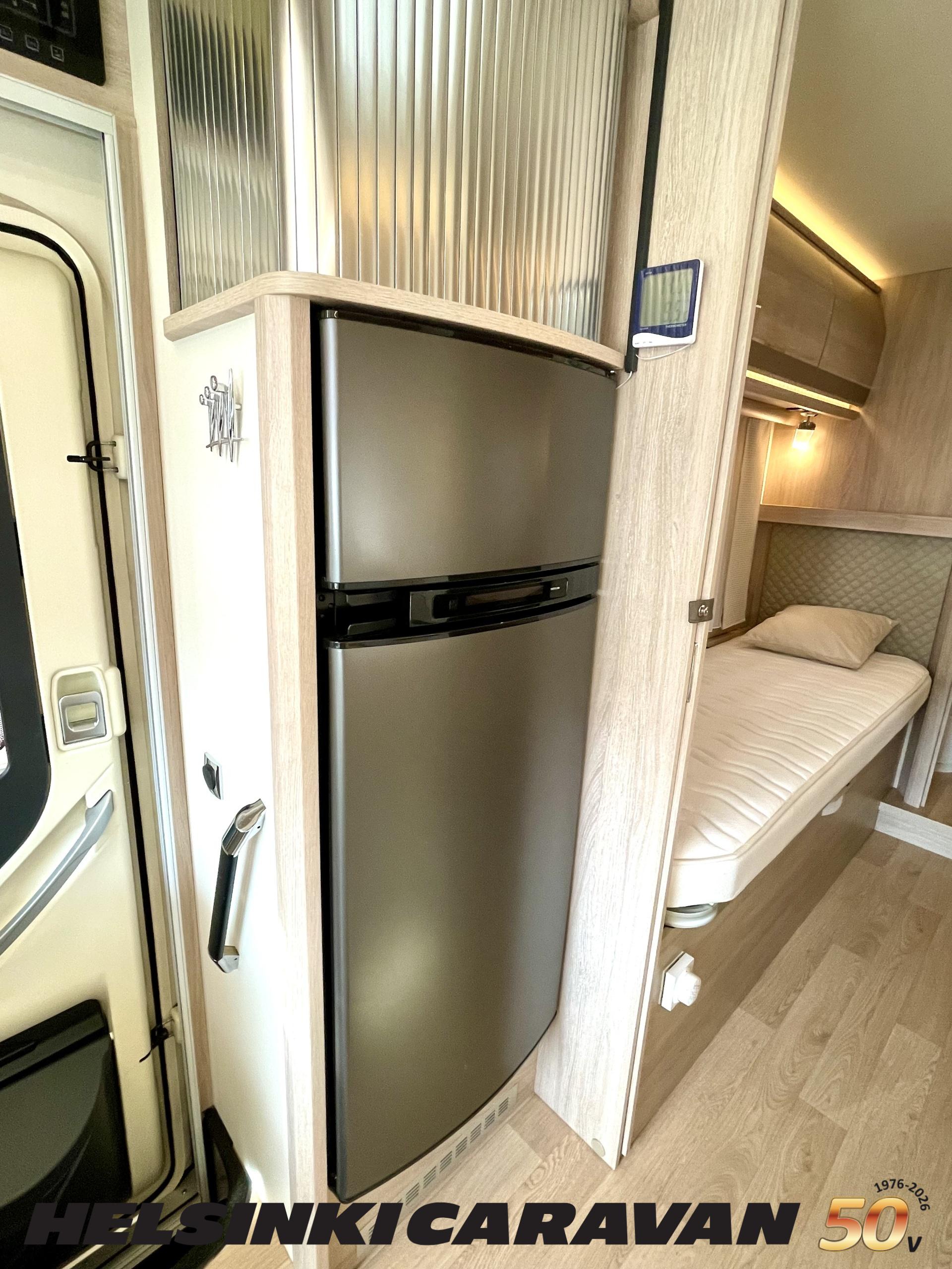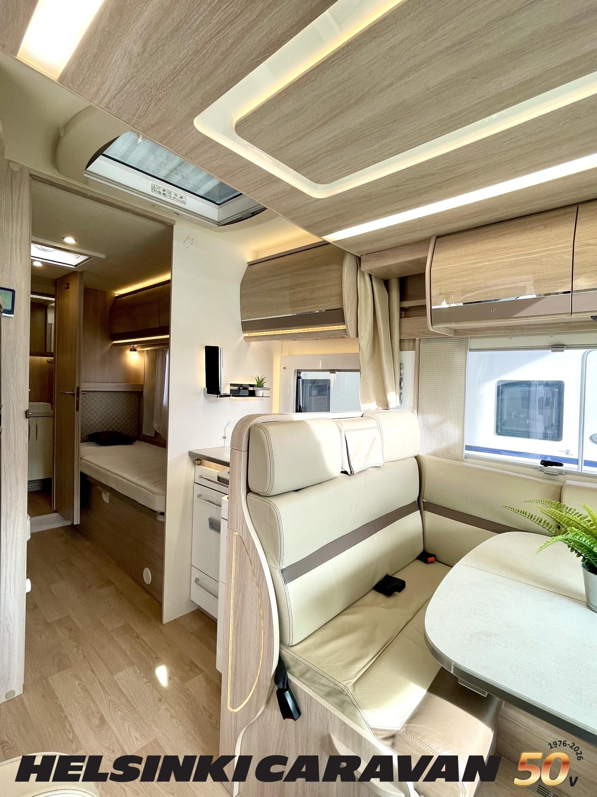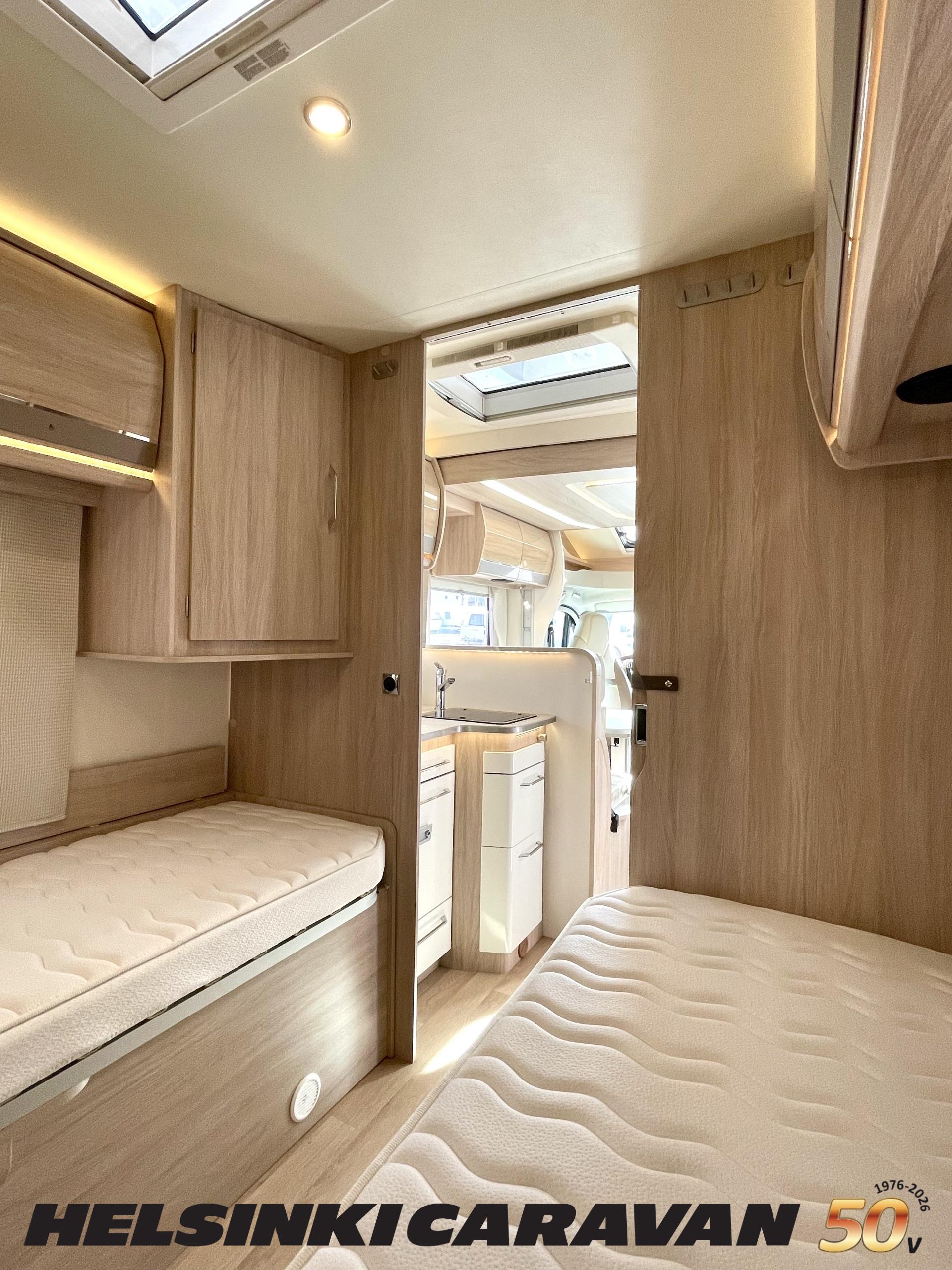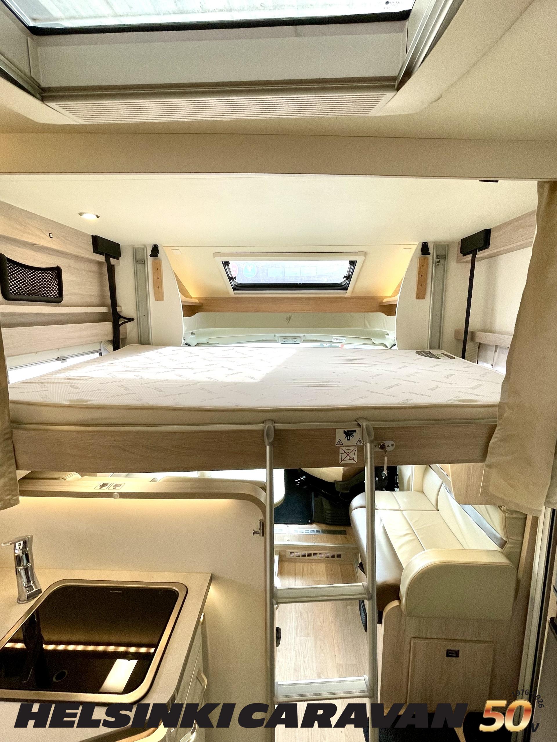 ABS-bromsar, Airbag, Bildator, Solpanel, Specialfälgar, Servicebok, Luftkonditionering i körutrymmet, Kylskåp, Kassettoalett, Kassettgardiner, Taklucka, Keskuslukitus: Avaimella, Startspärr, Spis, Motorvärmare, Slirskydd, Varmvattenberedare, Markis, Navigator, Servostyrning, Frysfack, Tvättho, Pysäköintikamera, Radio, Dusch, Elektriska fönster, Elpatron, Elektriska speglar, Elektrisk trappa, Trumatic, Turbo, Dragkrok, Vakionopeudensäädin, Mikrovågsugn, Separata sängar, Truma, Ilmastointi (ohjaamo), Vakionopeuden säädin, JP-huollot ok, Huoltokirja ok, Kesärenkaat, 1 x kevytmet.vanteet, ohjaamon kasettiverhot, Peruutuskamera, Asuinosan hyttysovi/verho, liukuoven softlock, Isolerad gråvattentank, System för stabilitetskontroll, Äänentoistojärjestelmä, Ilmastointi: Automaattinen