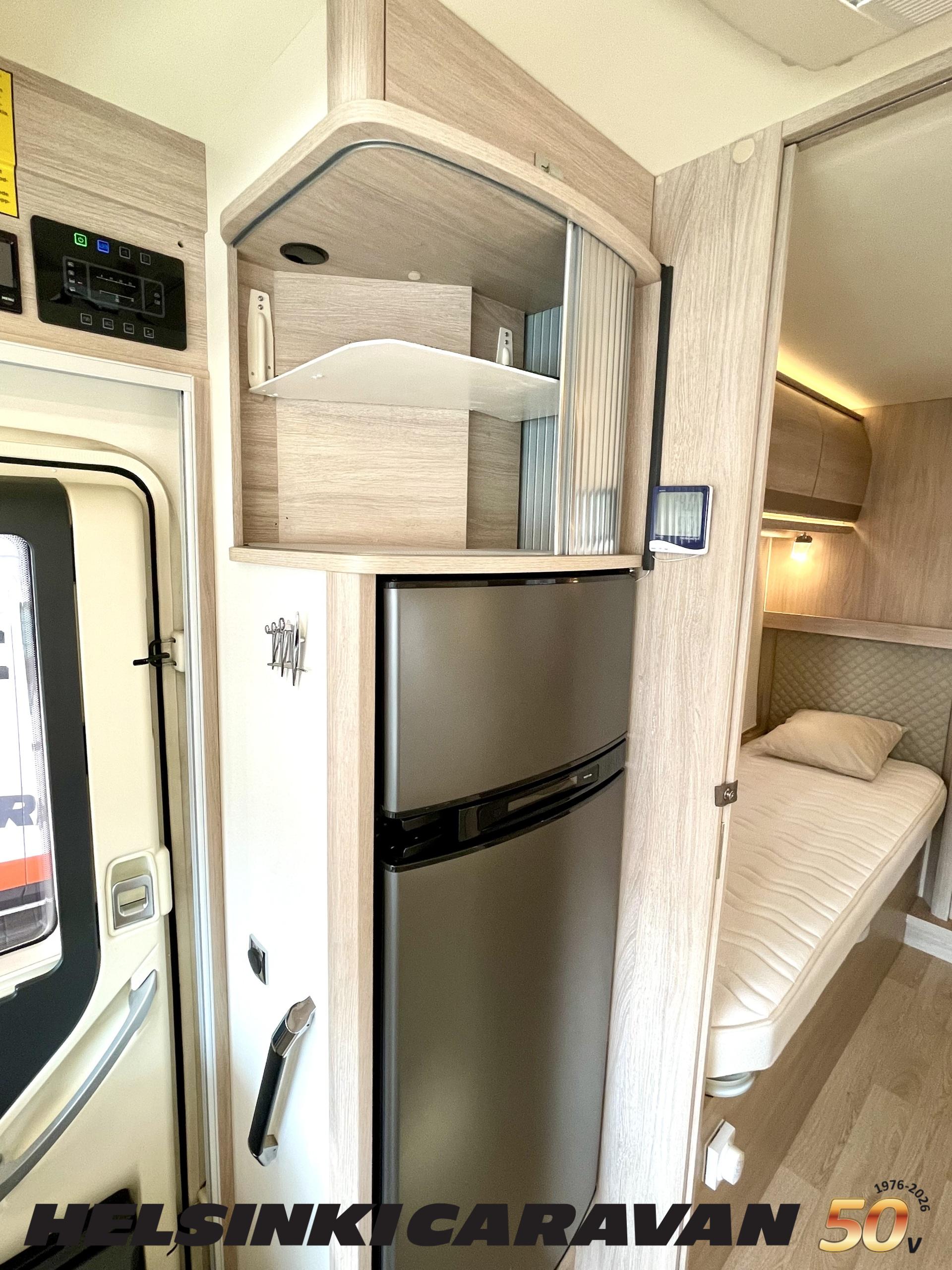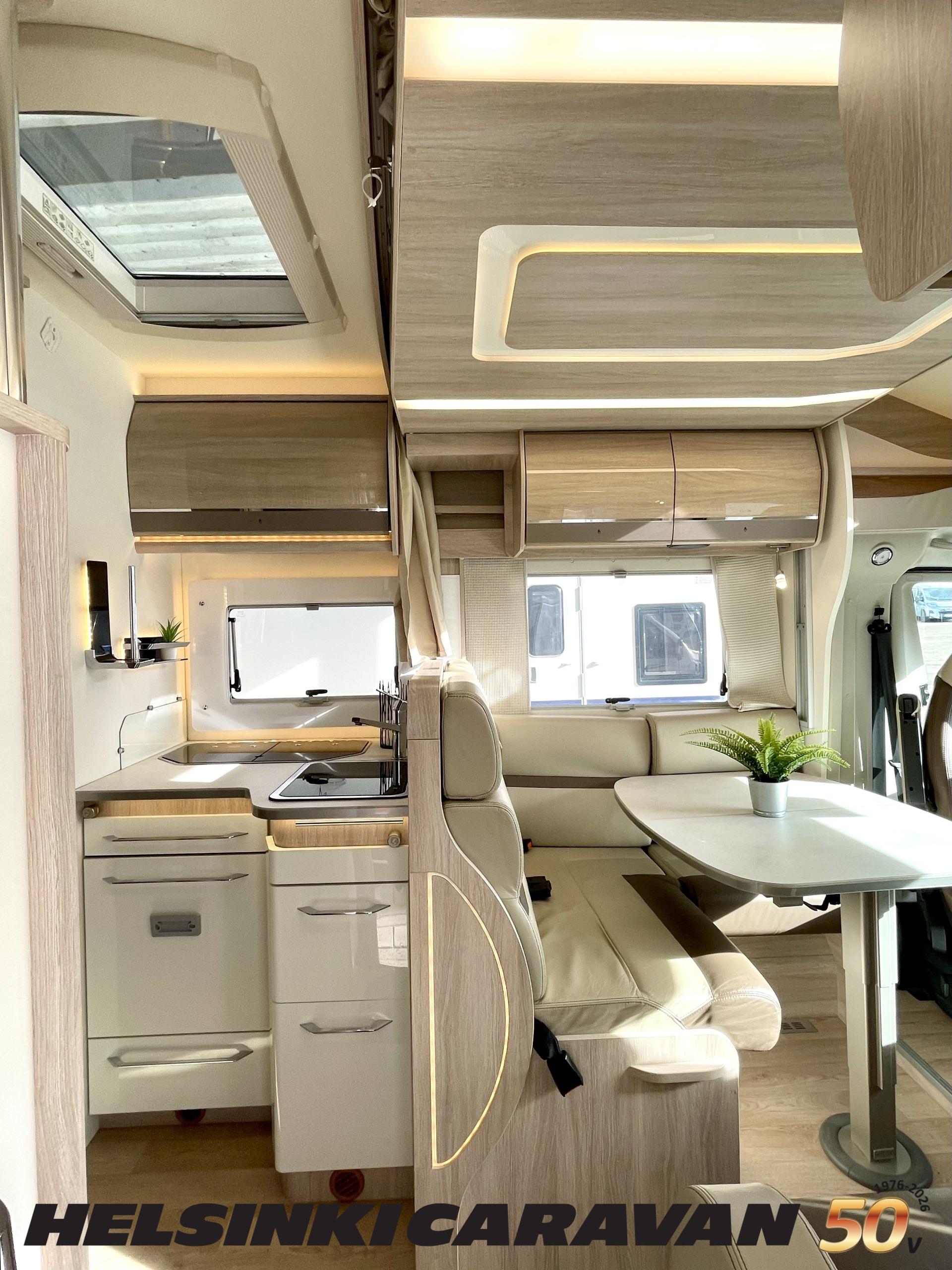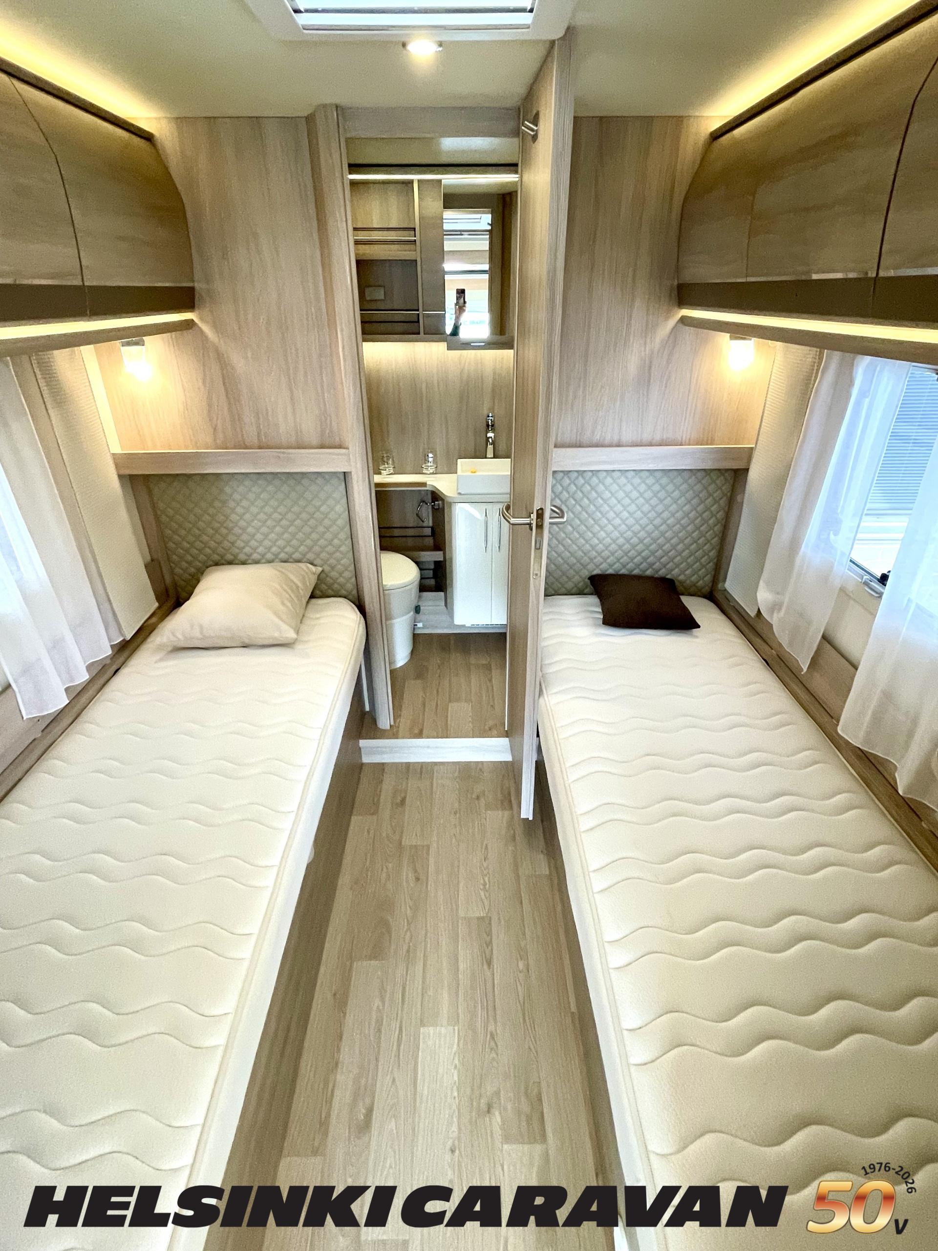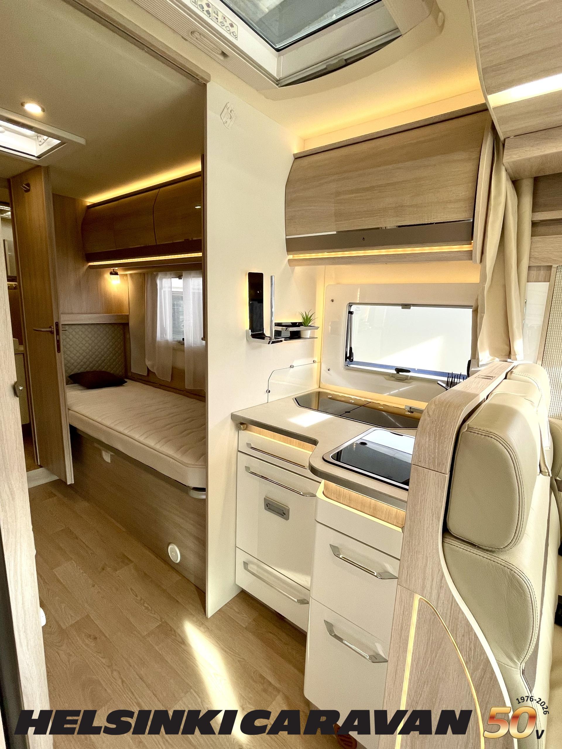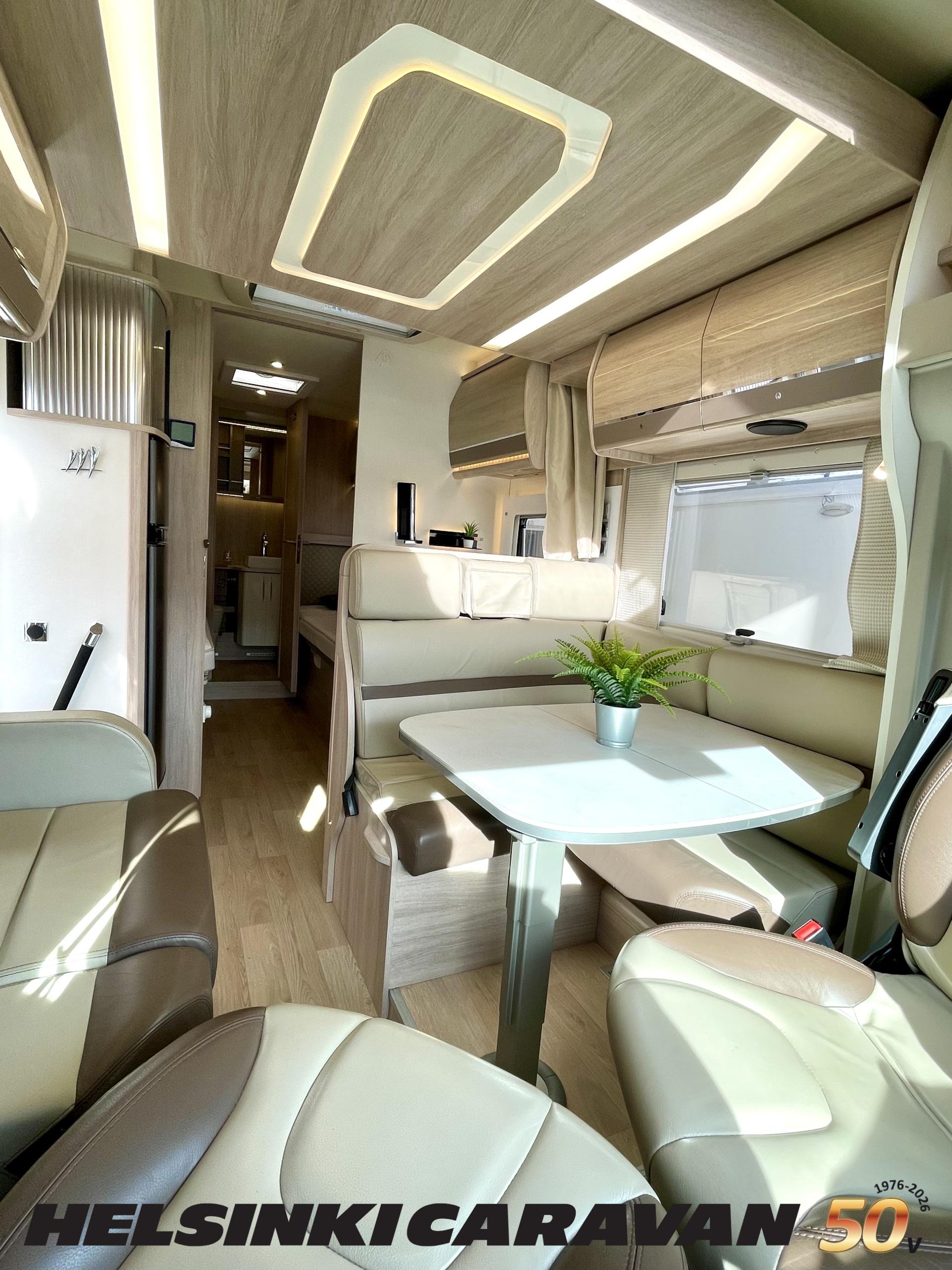 ABS-bromsar, Airbag, Bildator, Solpanel, Specialfälgar, Servicebok, Luftkonditionering i körutrymmet, Kylskåp, Kassettoalett, Kassettgardiner, Taklucka, Keskuslukitus: Avaimella, Startspärr, Spis, Motorvärmare, Slirskydd, Varmvattenberedare, Markis, Navigator, Servostyrning, Frysfack, Tvättho, Pysäköintikamera, Radio, Dusch, Elektriska fönster, Elpatron, Elektriska speglar, Elektrisk trappa, Trumatic, Turbo, Dragkrok, Vakionopeudensäädin, Mikrovågsugn, Separata sängar, Truma, Ilmastointi (ohjaamo), Vakionopeuden säädin, JP-huollot ok, Huoltokirja ok, Kesärenkaat, 1 x kevytmet.vanteet, ohjaamon kasettiverhot, Peruutuskamera, Asuinosan hyttysovi/verho, liukuoven softlock, Isolerad gråvattentank, System för stabilitetskontroll, Äänentoistojärjestelmä, Ilmastointi: Automaattinen