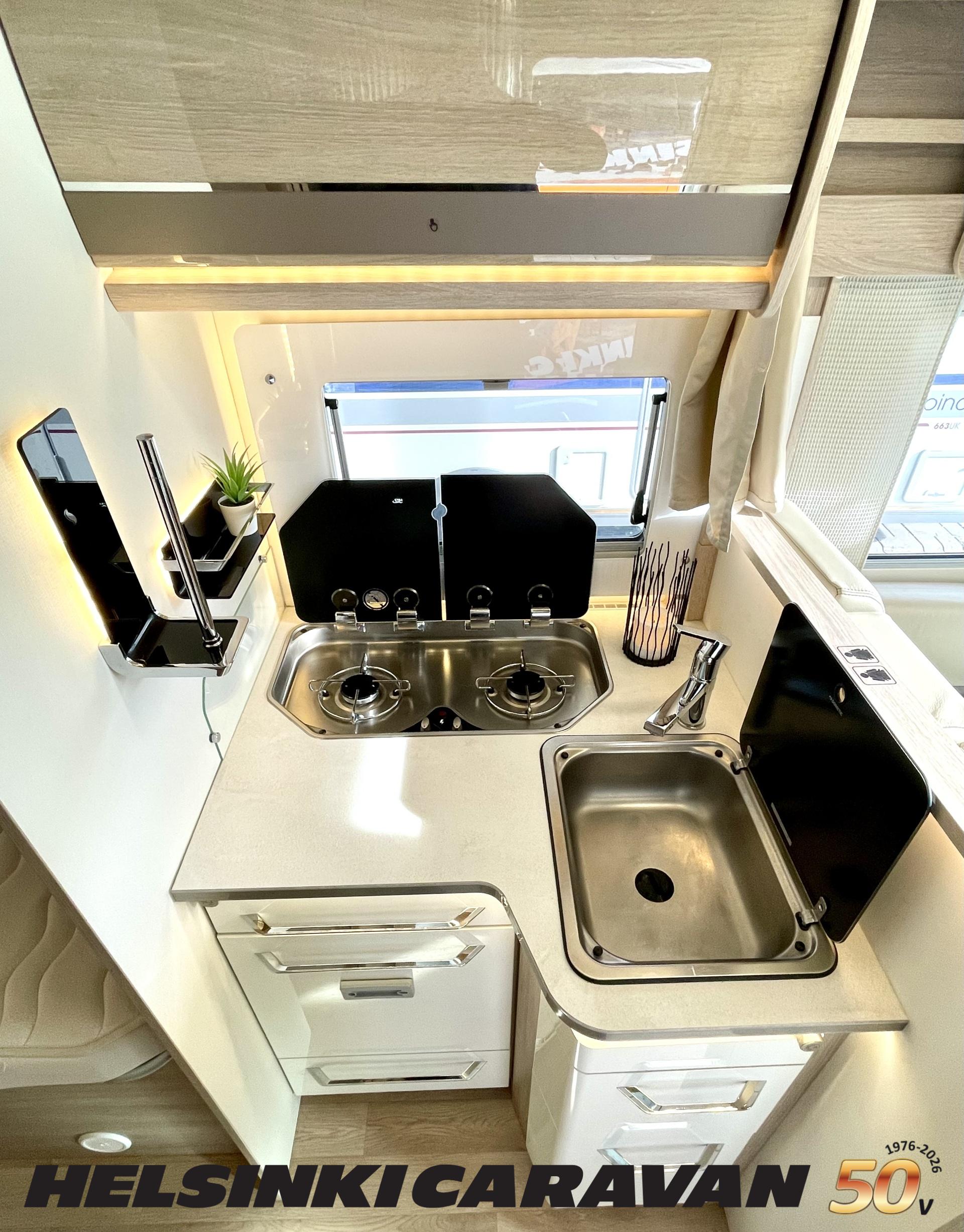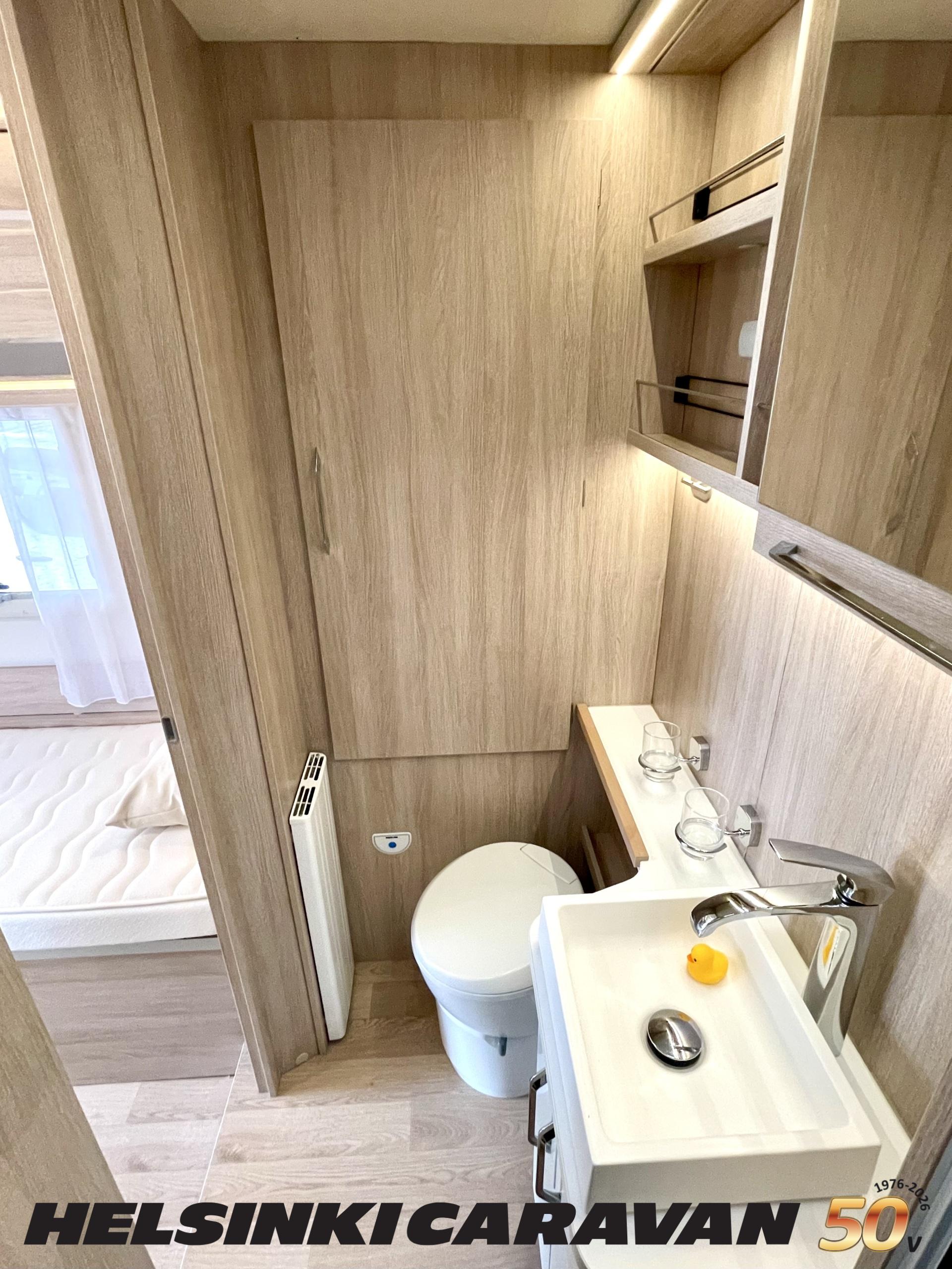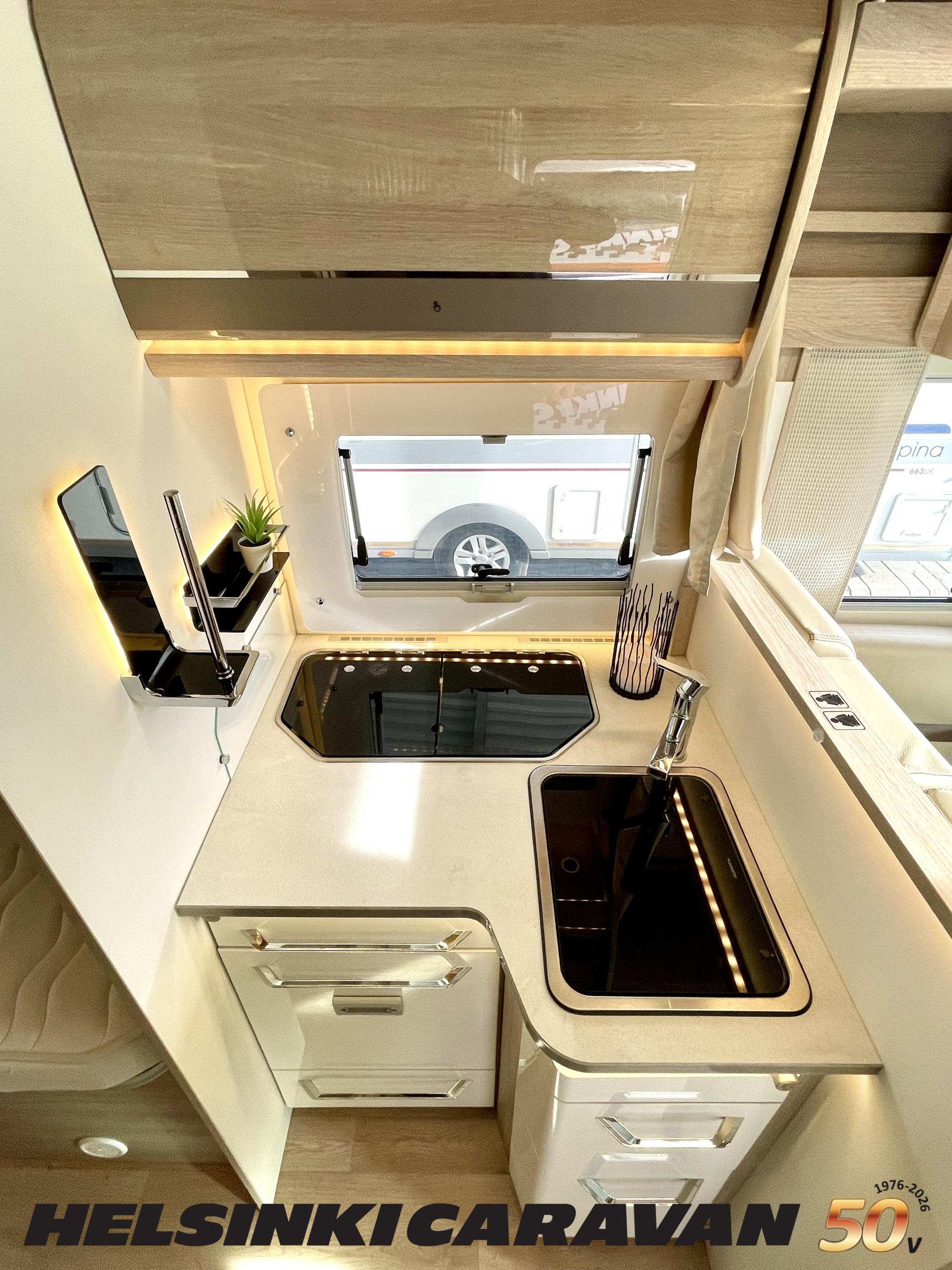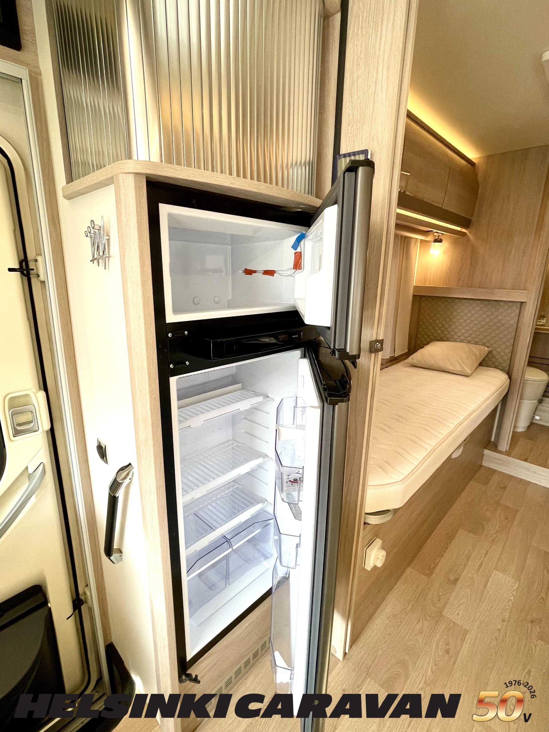 ABS-bromsar, Airbag, Bildator, Solpanel, Specialfälgar, Servicebok, Luftkonditionering i körutrymmet, Kylskåp, Kassettoalett, Kassettgardiner, Taklucka, Keskuslukitus: Avaimella, Startspärr, Spis, Motorvärmare, Slirskydd, Varmvattenberedare, Markis, Navigator, Servostyrning, Frysfack, Tvättho, Pysäköintikamera, Radio, Dusch, Elektriska fönster, Elpatron, Elektriska speglar, Elektrisk trappa, Trumatic, Turbo, Dragkrok, Vakionopeudensäädin, Mikrovågsugn, Separata sängar, Truma, Ilmastointi (ohjaamo), Vakionopeuden säädin, JP-huollot ok, Huoltokirja ok, Kesärenkaat, 1 x kevytmet.vanteet, ohjaamon kasettiverhot, Peruutuskamera, Asuinosan hyttysovi/verho, liukuoven softlock, Isolerad gråvattentank, System för stabilitetskontroll, Äänentoistojärjestelmä, Ilmastointi: Automaattinen