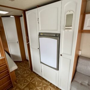 Alde, TV-antenni tai lautasantenni, Kylskåp, Kassettoalett, Parsäng, Stödben, Isolerad gråvattentank, Lattialämmitys (nestekierto), kaasun ulosotto, Taklucka, Golvvärme, Spis, Elpatron, Frysfack, Vätsecirkulationsvärme, Dusch