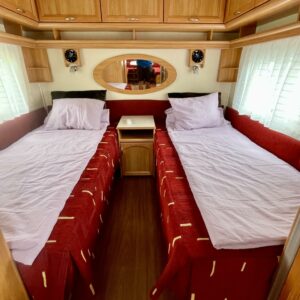 Alde, CD-soitin, Separata sängar, Kylskåp, Gasugn, Kassettoalett, Kassettgardiner, Taklucka, Spis, Varmvattenberedare, Markis, Vätsecirkulationsvärme, Frysfack, Tvättho, Cykelställ, Radio, Dusch, Elpatron, TV-antenni tai lautasantenni, Stödben