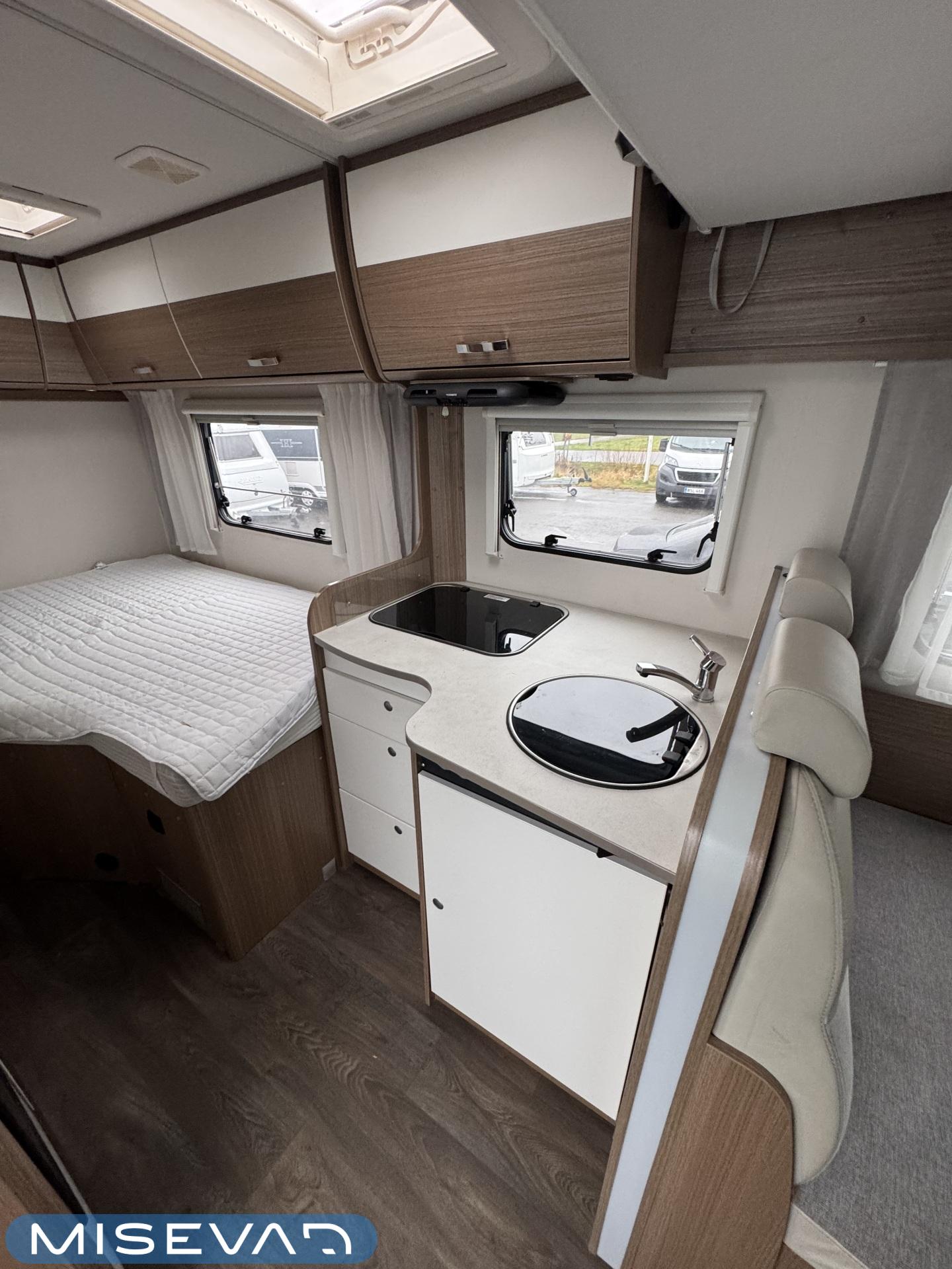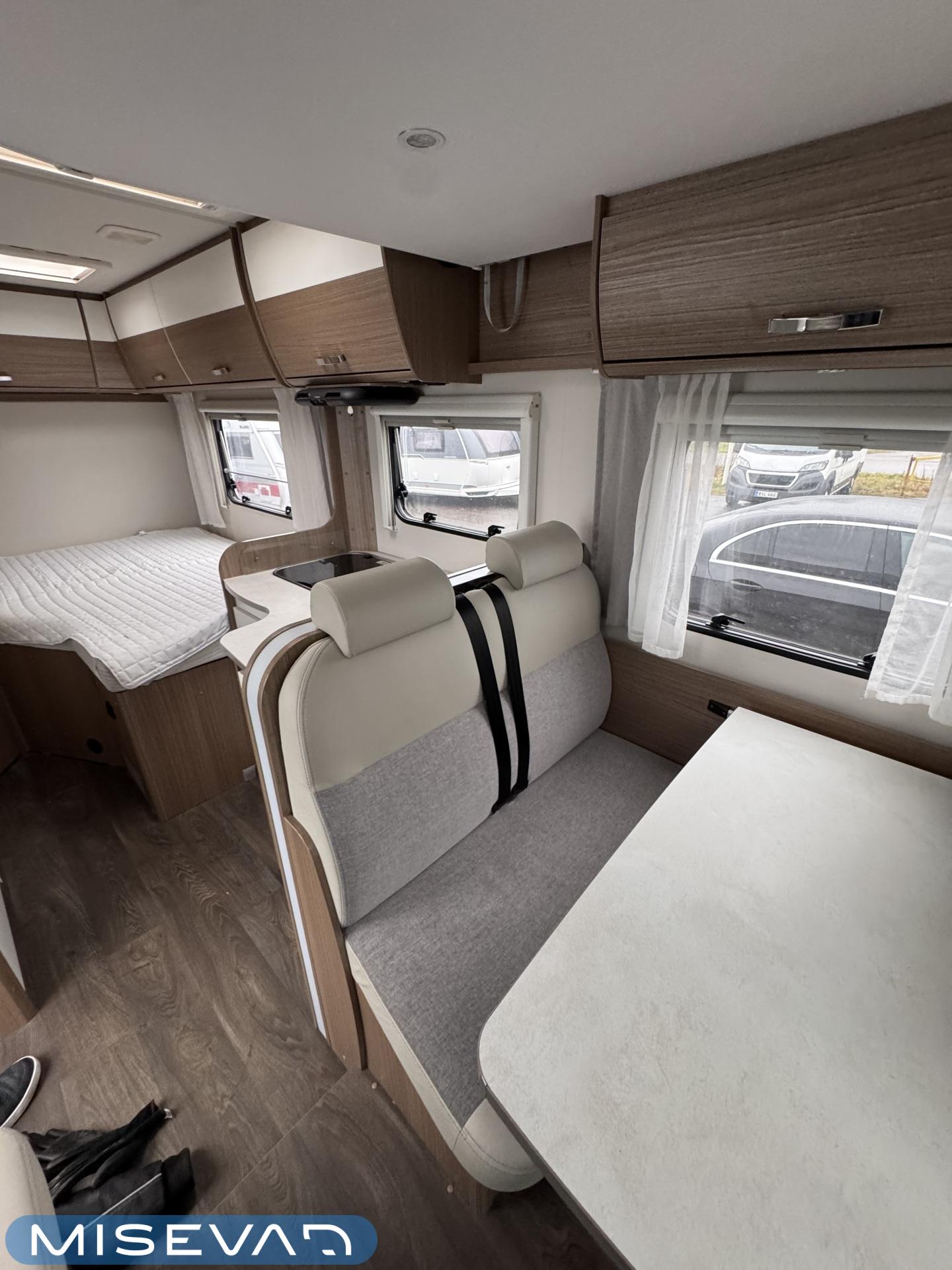 Solpanel, Luftkonditionering i körutrymmet, Kylskåp, Två däck, Taklucka, Keskuslukitus: Kaukosäätöinen, Servostyrning, Parsäng, Urtag inne, Elektriska fönster, Elektriska speglar, Dragkrok, Lattialämmitys (sähkö), 2 (ok) renkaat, Talvirenkaat(nasta), Tupla-akut, Bluetooth, Radio