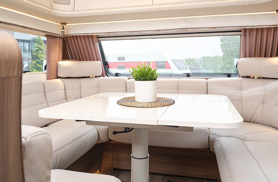 Sisätiloissa uutuuksia riittää. Uusi yläkaappimallisto tuo modernia ilmettä, ja istuinryhmän selkänojaan sijoitettu TV-teline mahdollistaa jopa 32 tuuman television asentamisen. Useampiin Novum- ja Royal-sarjan malleihin on tullut myös suosittu face-to-face-sohvaratkaisu, joka tekee oleskelutilasta avaramman ja sosiaalisemman.