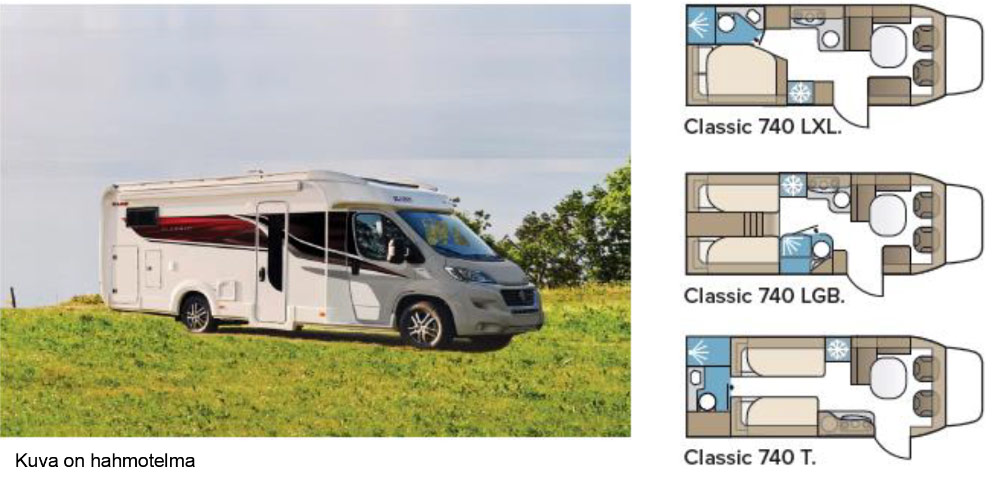 Uudessa Classicissa on kolme tuttua pohjaratkaisua: LXL ranskalaisella vuoteella ja erillisvuodevaihtoehdoilla LGB ja T, jossa wc-kylpyhuone on auton takaosassa. Kaikki kolme mallia ovat puoli-integroituja matkailuautoja 3,5-tonnin luokassa, ja niitä voi ajaa tavallisella B-ajokortilla.