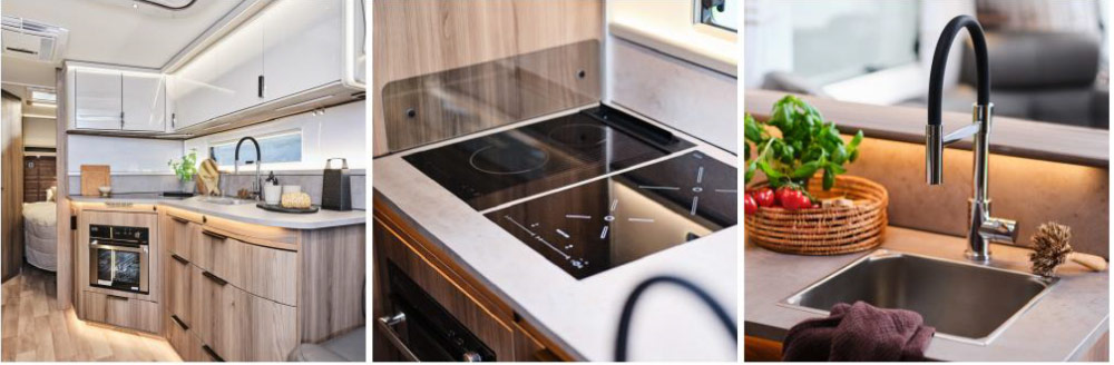 Imperial-mallissa on hellauutuus Gas-under-Glass, jossa on kaksi kaasupoltinta ja induktioliesi – kaikki tyylikkäästi piilotettuna sileän lasilevyn alle. Tämä on esteettisesti miellyttävä ja helpottaa puhdistamista. Gas-under-Glass hella on ensimmäinen matkailuvaunumarkkinoilla.