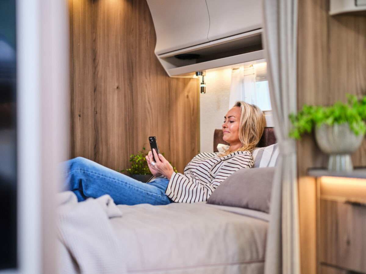 Tyylikäs GREE Shark lämpöpumpuilla viilentää tehokkaasti suurenkin matkailuauton tai -vaunun. Ohuen muotoilun ansiosta laite sopii useimpiin ympäristöihin.